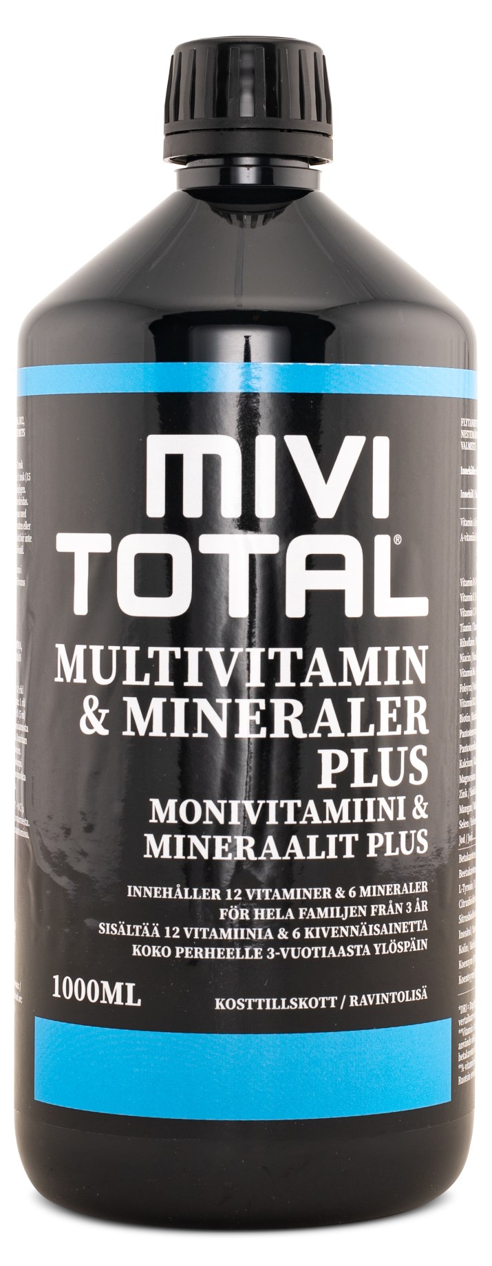 Mivitotal® Plus är ett vitamin - och mineralkomplex för hela familjen, som kan ätas av både vuxna och barn (från 3 år och uppåt). Mivitotal® Plus är i flytande form, vilket innebär att tillskottet enkelt bryts ned och tas upp snabbt i kroppen.