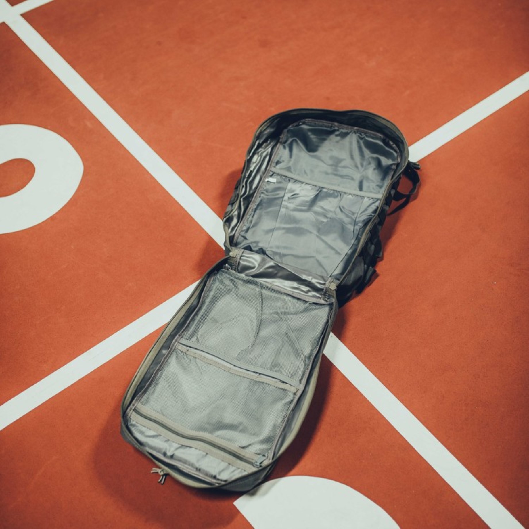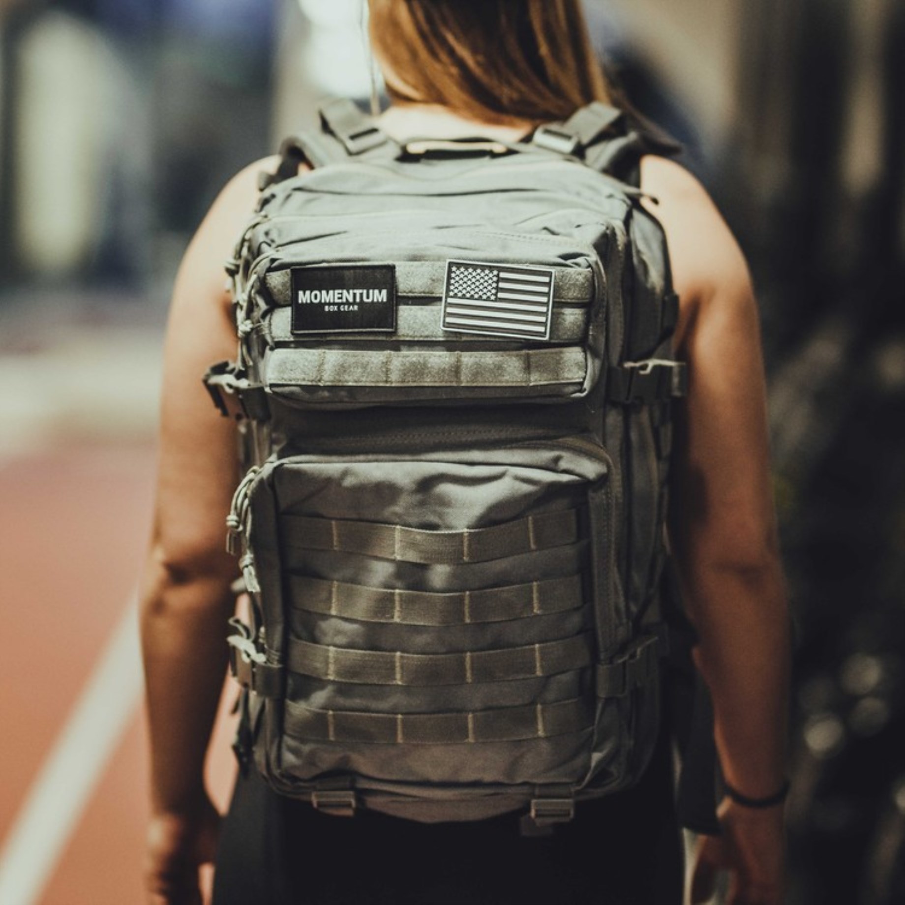 Momentum Box Gear Backpack MURPH är en rymlig ryggsäck på 45 liter med plats för både träningskläder och utrustning. Väskan är inspirerad av ryggsäckar från den amerikanska militären. Den är tillverkad i ett slitstarkt och vattentätt material med ett system som andas på baksidan för en avsvalnande effekt. Perfekt för den aktiva atleten som exempelvis ägnar sig åt crossfit och funktionell träning. Väskan har två större huvudfack samt två mindre fack på framsidan, alla med förstärkta dragkedjor. Insidan av väskan har flera förvaringsfack och även ett utrymme för en laptop på väskans ryggsida. På väskans övre del finns ett område med mjuk kardborre, där kan du placera valfria patchar.