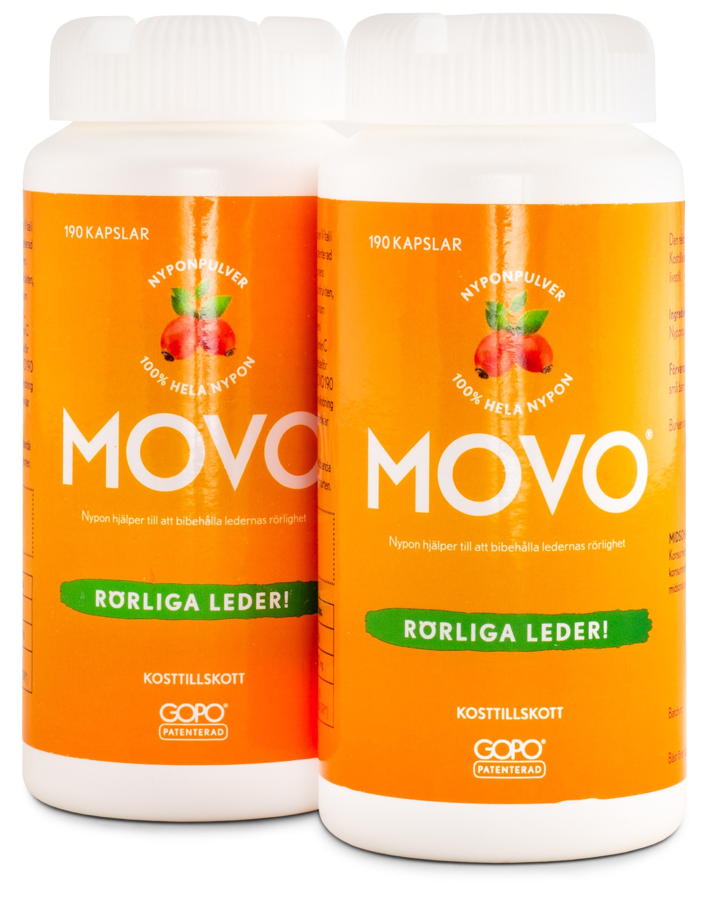 MOVO är tillverkad av de nypon som har ett rikt innehåll på verkningsmekanismer som bidrar till en normal ledrörlighet, enligt den välkända patenterade GOPO med en varsam torkningsprocess. Nyponen har ett naturligt högt innehåll av vitamin C som har en antioxidativ effekt och skyddar cellerna från nedbrytning. Vitamin C bidrar även till en normal nybildning av kollagen, ett sorts protein som ger stadga och stöd till bindväv, brosk och leder. Använd MOVO som ett dagligt tillskott av nyponpulver.