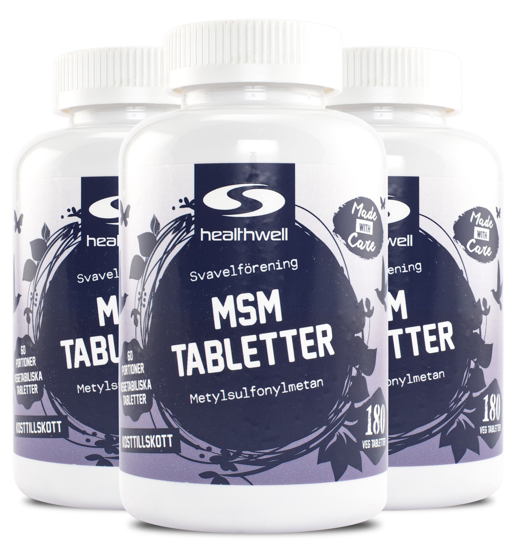 MSM har på senare år rönt stor uppmärksamhet inom forskningsvärlden och är ett helt naturligt ämne som består av svavelföreningar. Svavel förekommer naturligt i kroppens bindväv, såsom leder, ligament, hår och hud, vilket gör att ett tillskott av MSM passar utmärkt för dig som vill upprätthålla detta. Mängden svavel i kroppen påverkar också hur mycket B-vitamin som kroppen kan tillgodogöra sig. Healthwell MSM Tabletter innehåller rent och högkoncentrerat MSM-pulver i vegetabiliska tabletter som du tar varje morgon. Om tabletterna känns stora eller svåra att svälja kan du också krossa eller dela dem.