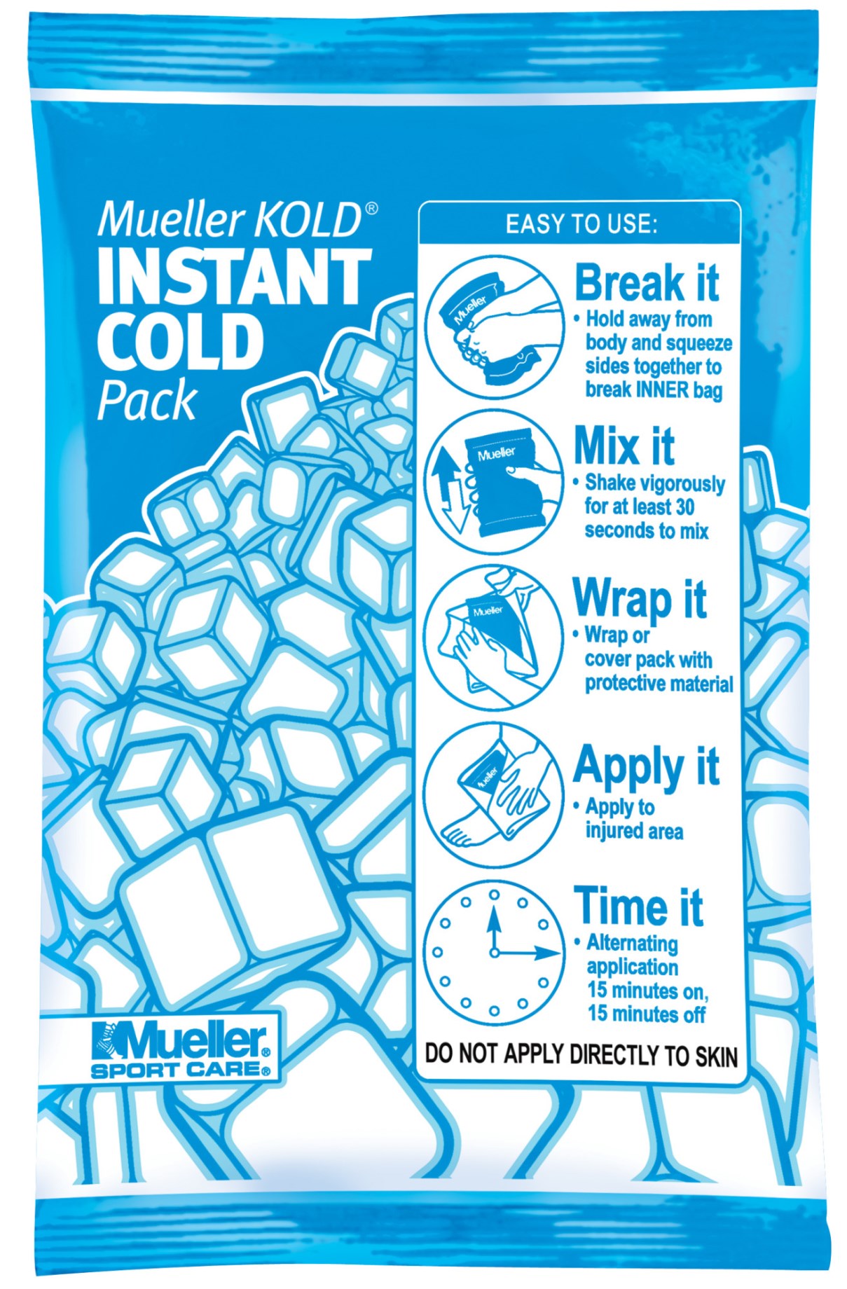 Få snabb kyla på det smärtande området när olyckan eller idrottsskadan är framme med Mueller Kold® Instant Cold. Instant Cold från Mueller är en engångskylpåse som aktiveras och blir kall så fort du trycker på den. Påsen behöver inte kylas innan, bara att ta sönder och skaka påsen så aktiveras den kemiska reaktionen och du får kyla som kan lindra din smärta. Så lindra svullnaden från ett skadat knä eller en lårkaka med denna kylpåse.