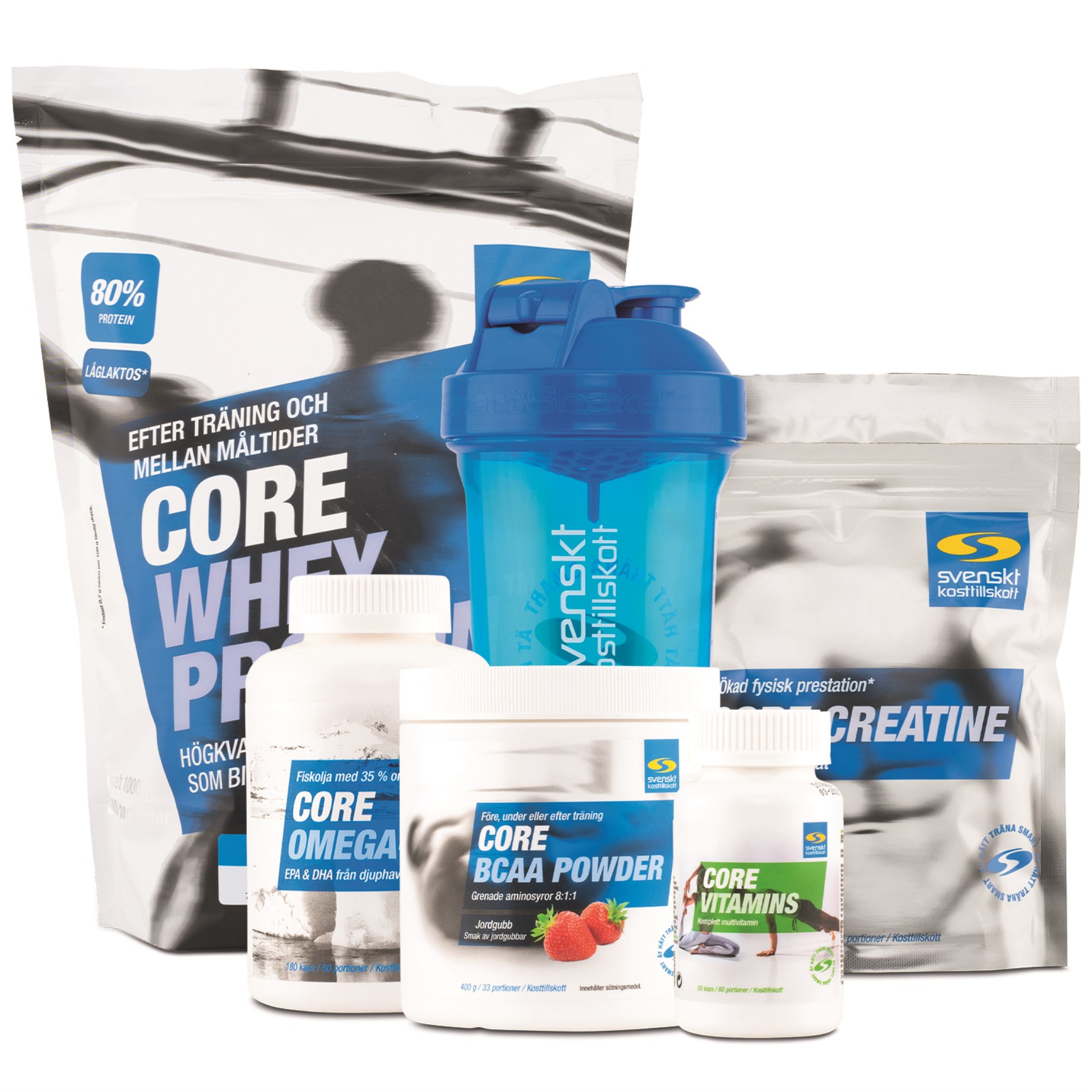 - Core Whey Protein för att tillföra extra protein och bygga muskler effektivt