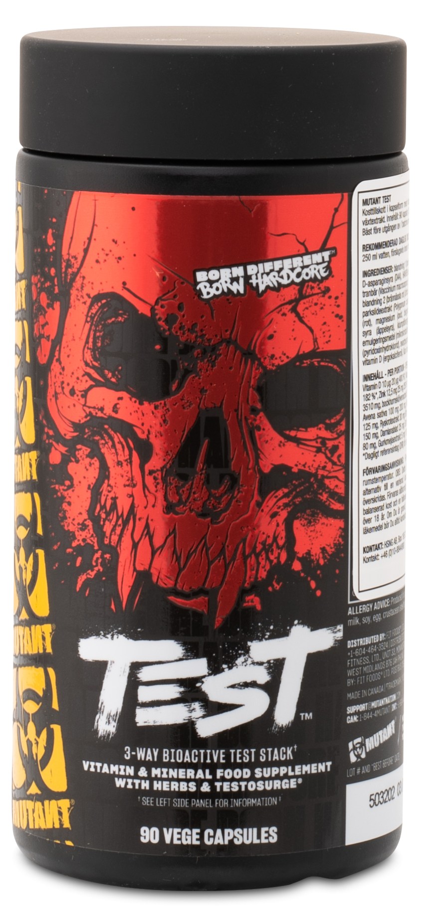 Mutant Test är ett tillskott för dig som vill maximera din muskeluppbyggnad. Innehåller 18 aktiva ingredienser per dos och är för många tillskott nummer ett i kategorin muskelökning. Innehållet består av verksamma ämnen som bockhornsklöver, D-asparaginsyra och det unika komplexet TestoSurge. Dessutom ingår klassiska mineraler som magnesium för normal muskelfunktion och zink som bidrar till normala nivåer av testosteron i blodet. Mutant Test är testat, omtyckt och inte minst effektivt när du vill maxa muskeltillväxten!