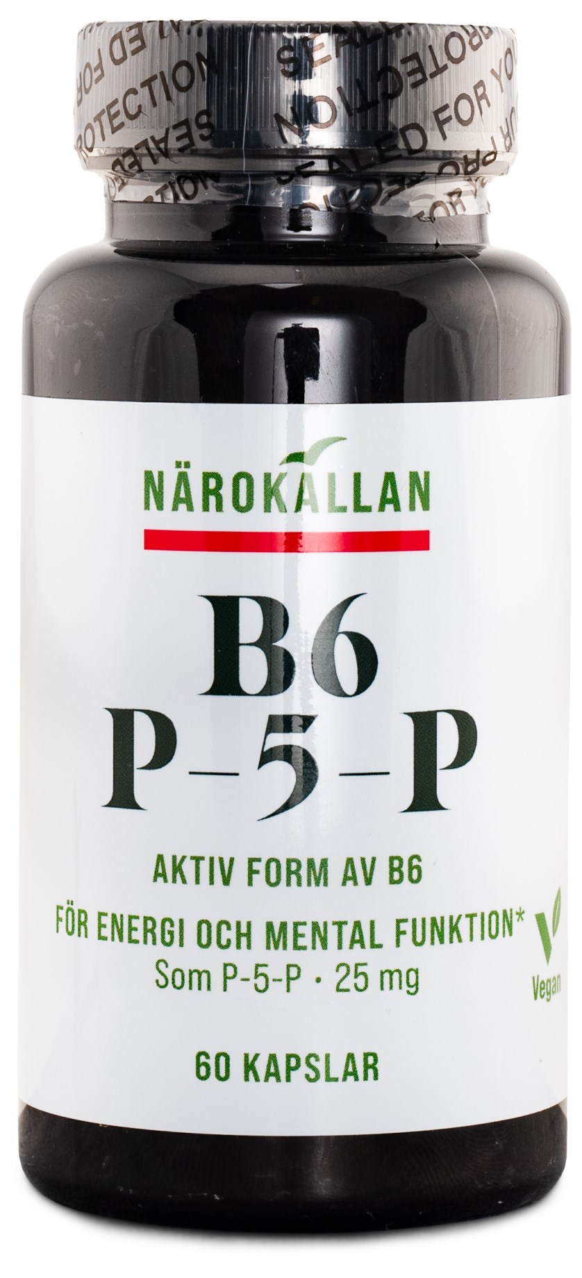 Närokällan B6 P-5-P är ett kosttillskott med en särskilt biotillgänglig och lättupptaglig form av det vattenlösliga vitaminet pyridoxin. Detta vitamin spelar en viktig roll i omsättningen av protein och glykogen och bidrar dessutom till ett normalt fungerande immunsystem och till normal bildning av röda blodkroppar. I Närokällan B6 P-5-P kommer vitamin B6 i den aktiva formen P5P, vilket innebär att den redan är i en form som kroppen kan tillgodogöra sig. Detta skiljer sig från exempelvis pyridoxin hydroklorid och pyridoxal, eftersom dessa typer av B6 behöver brytas ned i levern innan kroppen kan använda dem.