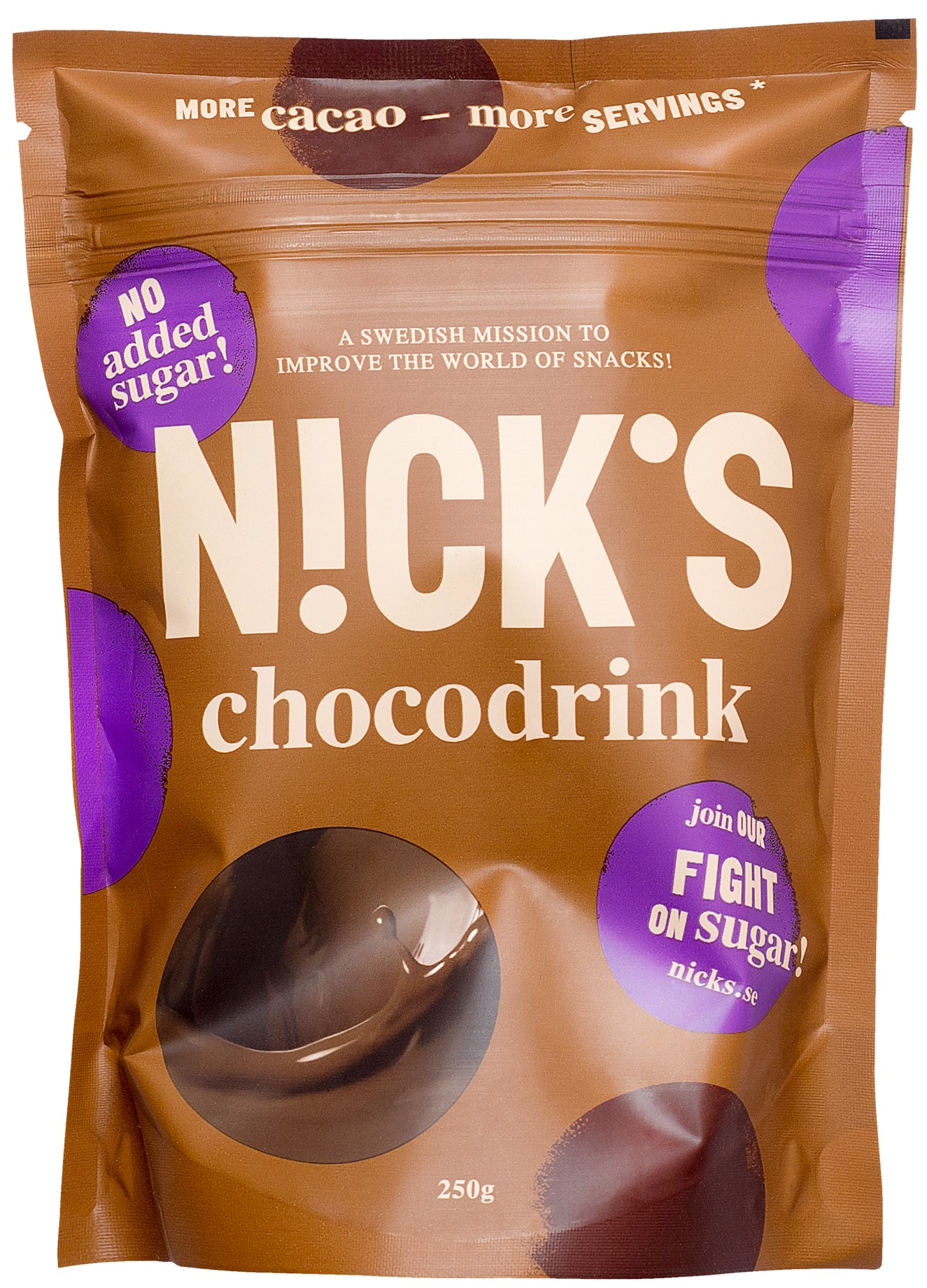 Nicks Chocodrink är en supergod chokladdryck utan tillsatt socker. I denna dryck har man i stället fokuserat på ett högt innehåll av kakao samt fibrer.