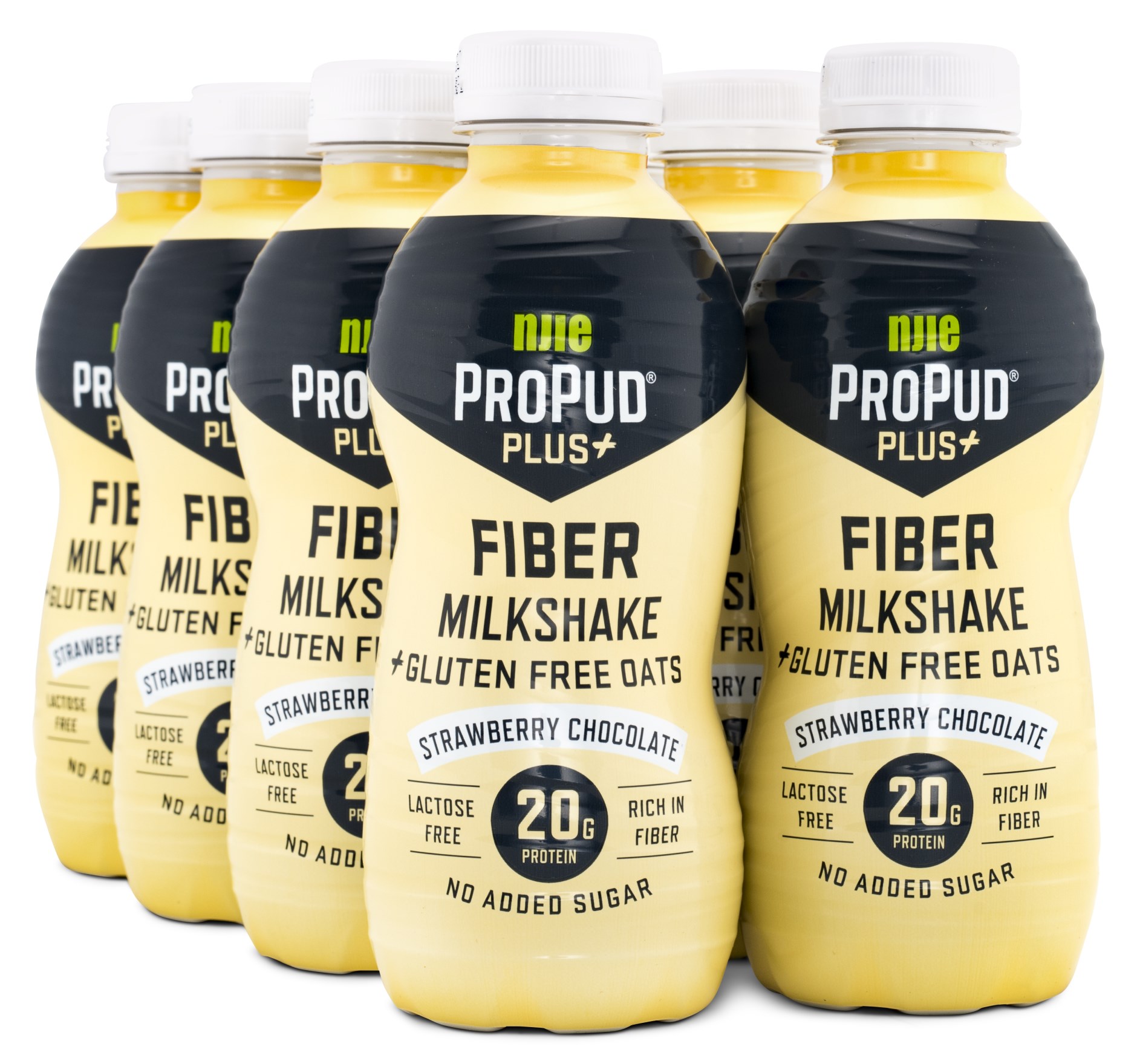 NJIE ProPud Plus+ Fiber Milkshake är en krämig milkshake med fibrer från havre. Denna milkshake gör att du håller dig mätt extra länge tack vare havrefibrerna och ett proteininnehåll på hela 20 gram per flaska. NJIE ProPud Plus+ Fiber Milkshake är fri från tillsatt socker och laktos vilket gör den till ett hälsosamt mellanmål även för dig som håller koll på kalorierna. Ta med dig en Fiber Milkshake och drick mellan jobb och träning, på väg hem från skolan eller på resan när du vill ha något riktigt gott och mättande!