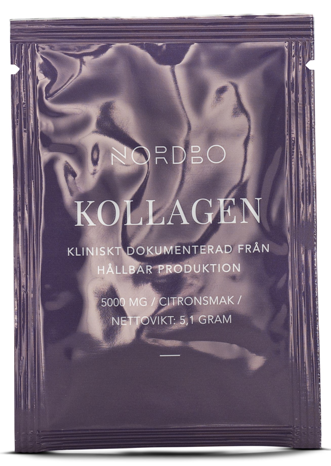 Nordbo Kollagen är ett kollagentillskott i pulverform som enkelt löses upp och blandas i valfri vätska. Kollagenet kommer från fisk och är ASC-certifierat vilket garanterar att produktionen är hållbar både socialt och miljömässigt. Kollagenproteinet bidrar till hudens elasticitet samt stärker kvaliteten på hår och naglar. Med stigande ålder avtar den naturliga kollagenproduktionen i våra kroppar och kan därmed vara en anledning till att rynkor och fina linjer uppkommer. Vitamin C och zink är tillsatt för att öka upptaget av kollagen i kroppen. Nordbo Kollagen kommer i praktiska doseringspåsar med en god och naturlig smak av citron.