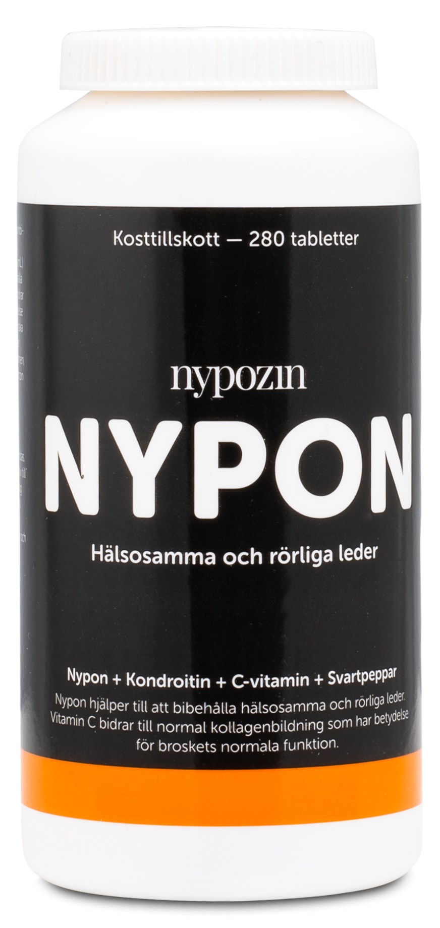 Tillskottet är ett av marknadens mest högkoncentrerade nyponprodukter, som förstärkts med det patenterade C-vitaminet Ester-C® samt kondroitin och Bioperine® (ett patenterat svartpepparextrakt). Nypon hjälper till att bibehålla hälsosamma och rörliga leder. Vitamin C bidrar till normal kollagenbildning som har betydelse för blodkärlens normala funktion.