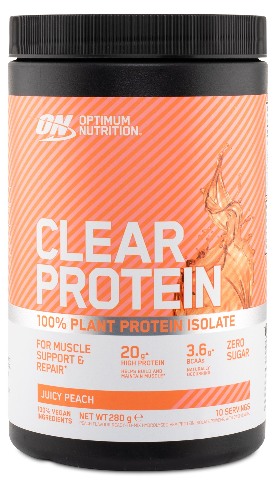 Clear Vegan Protein är ett 100 % plantbaserat ärtprotein från Optimum Nutrition som finns i två goda smaker, Lime Sorbet och Juicy Peach. Det här ärtproteinisolatet är ett naturligt vegetabiliskt protein som har en omfattande närings- och aminosyraprofil. Proteinpulvret är hydrolyserat vilket innebär att det är mycket enkelt att lösa i vatten. Det goda proteinpulvret av ärtor är perfekt för dig som letar efter ett grönare proteinpulver. Perfekt efter träning eller som ett gott och proteinrikt mellanmål.