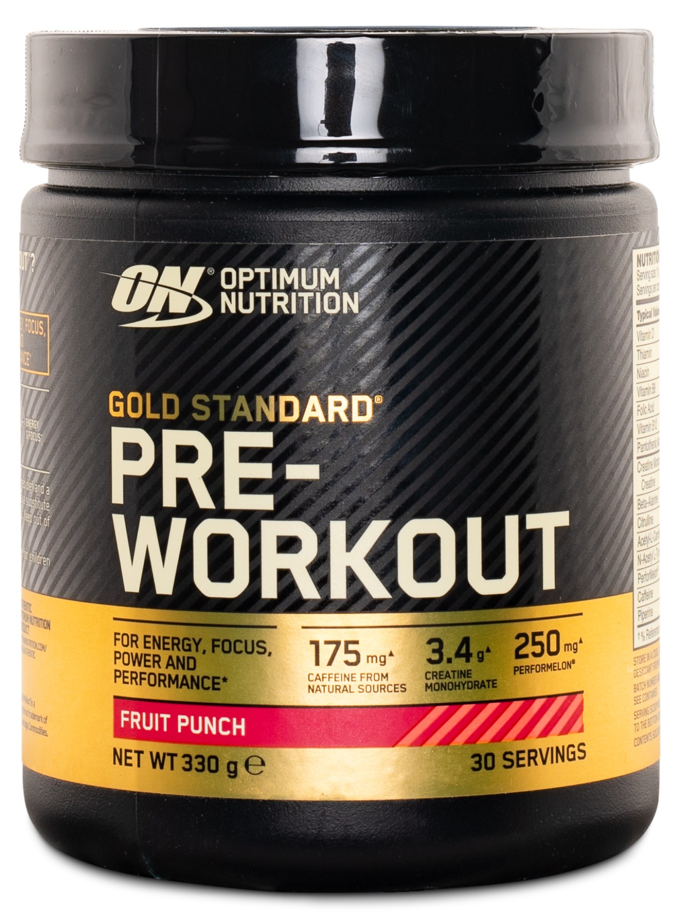 Optimum Nutritions produktlinje Gold Standard samlar de mest avancerade tillskotten med riktigt högkvalitativt innehåll så att du ska få ut det bästa möjliga av din produkt vid hård fysisk ansträngning. Denna PWO innehåller en välbalanserad dos koffein för optimalt fokus med målet att undvika koffeinets oönskade biverkningar. Kreatinmonohydrat bidrar med kreatinets effekter som i samband med kortvarig och högintensiv träning kan öka den fysiska prestationen vid upprepade rörelser. De populära ingredienserna citrullin och beta-alanin gör Optimum Nutrition Gold Standard Pre-Workout till en utmärkt produkt att inta före träning.