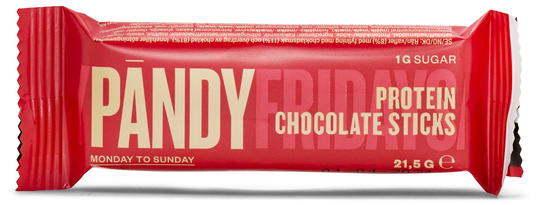 Pändy Chocolate Sticks är en härlig kexchoklad. Den innehåller endast 1 gram socker per bar och 16 % protein. Ett perfekt mellanmål när du är sugen på något sött och gott men vill ha ett hälsosammare alternativ med mindre socker.