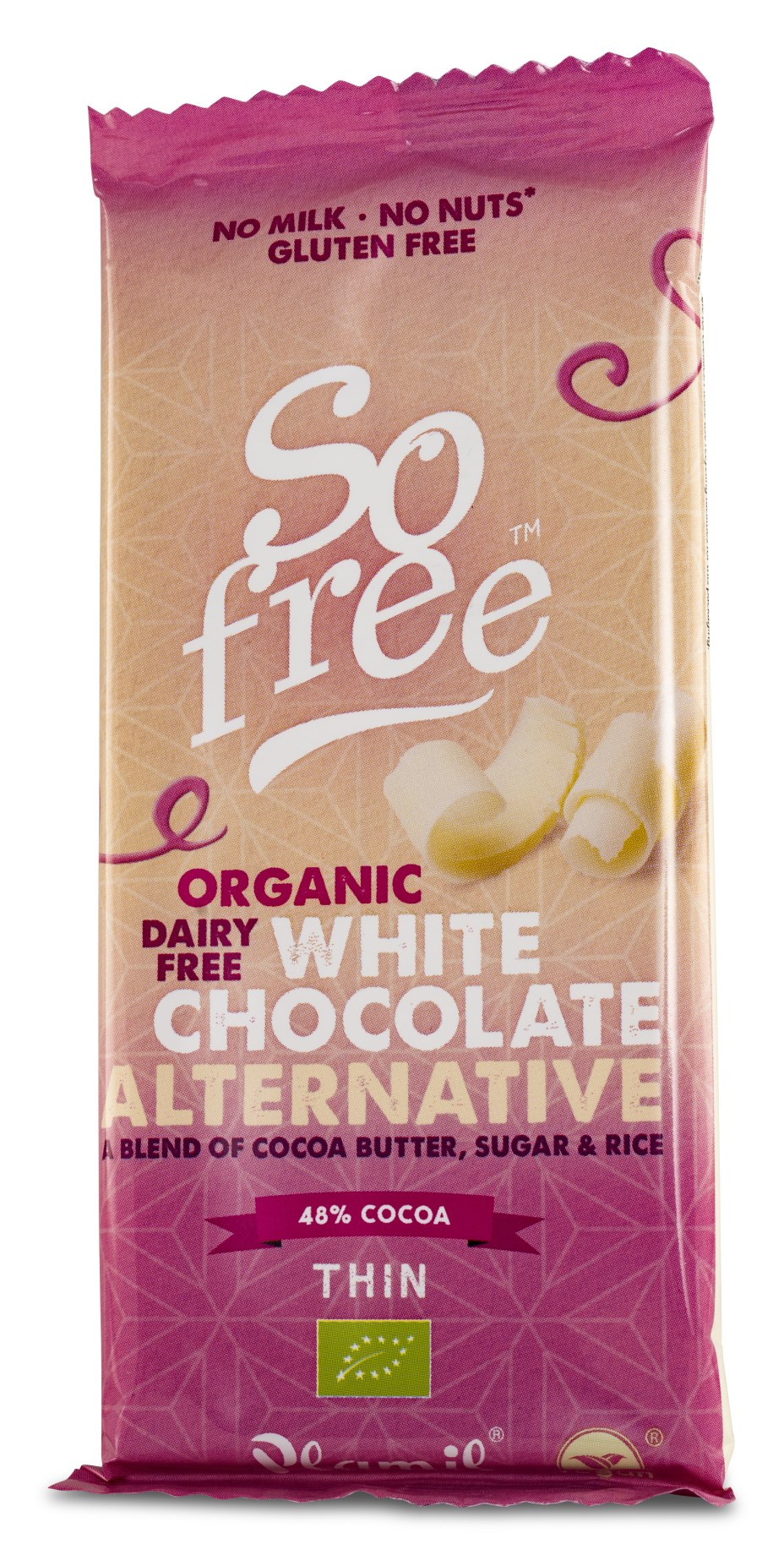 Äntligen kan du njuta av en underbart god bit choklad, helt utan mjölkprodukter, nötter och gluten. Plamil So Free är en vegansk choklad i flera goda smaker. Välj mellan mörk choklad, ljus choklad och vit choklad med olika smaksättning. Plamil So free är en ekologisk choklad med rårörsocker och etiskt odlade kakaobönor, naturligt fri från gluten. Istället för mjölkprodukter i mjölkchokladen har man använt ekologiskt rispulver som ger en härlig textur och smak till chokladen. Plamil So free kan därför ätas av dig som är vegan eller vegetarian, glutenintolerant och laktosintolerant. Dessutom är det extra gott för samvetet att chokladen är ekologisk och märkt med Fairtrade.