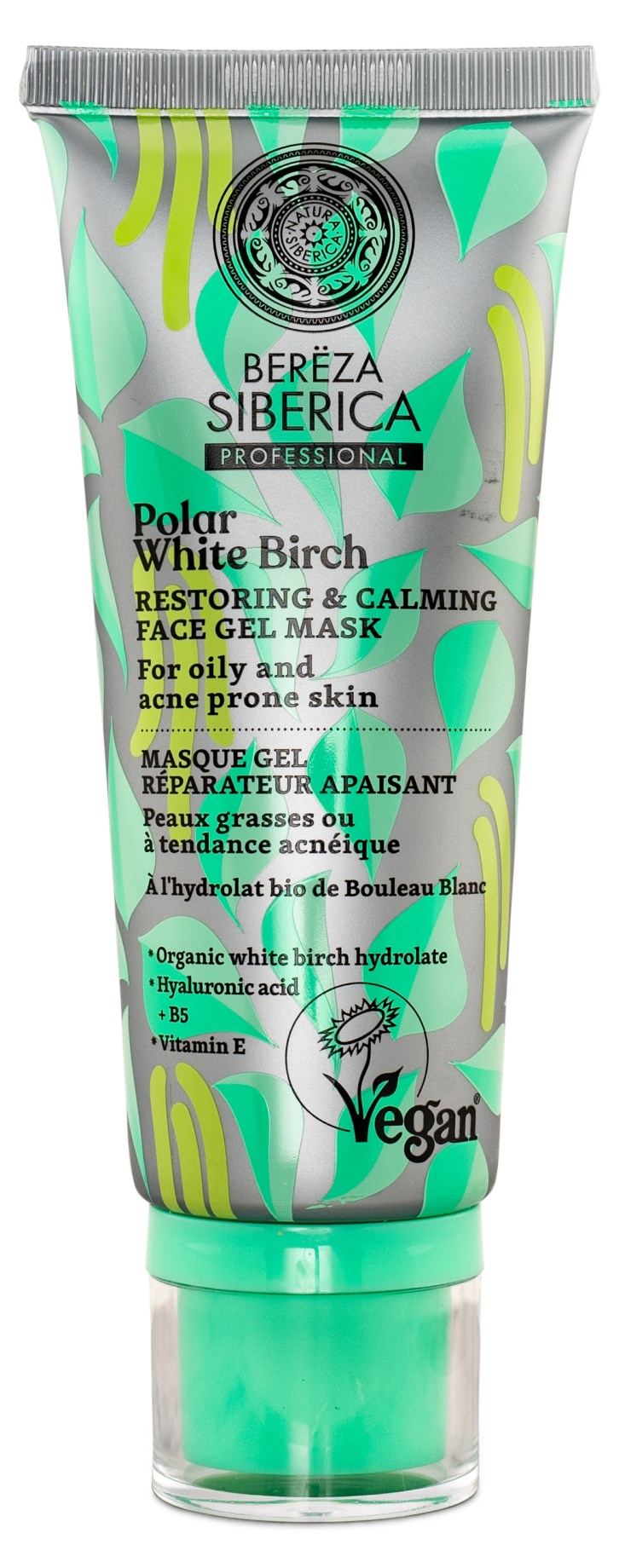 Polar White Birch Restoring & Calming Face Gel Mask är en gelmask som tillhör en hudvårdslinje från Natura Siberica baserad på hydrolat från polarbjörk. Polarbjörk har en lugnande inverkan på huden tack vare sitt rika innehåll av betulin och höga halter vitamin B2 och B5. Med masken lugnar och återställer du irriterad hud som lätt får akne eller orenheter, den blir mjuk samtidigt som hudens oljebalans kontrolleras.