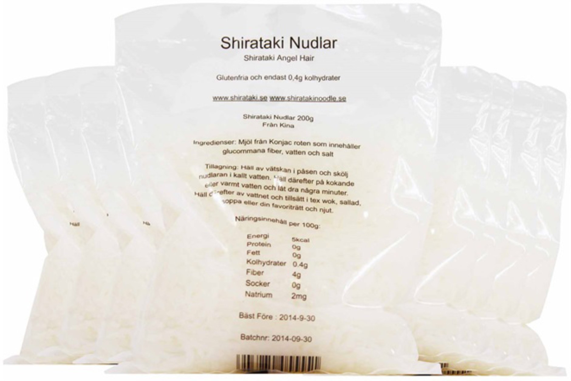 Shirataki Nudlar ifrån Asien utan kolhydrater och endast 5 kcal per 100g. Tunna genomskinliga nudlar tillverkade av konjakroten (glukomannan) och vatten som ger en i princip kolhydratfri pasta. Neutrala i smaken och perfekta att smaksätta med dina egna favoriter!