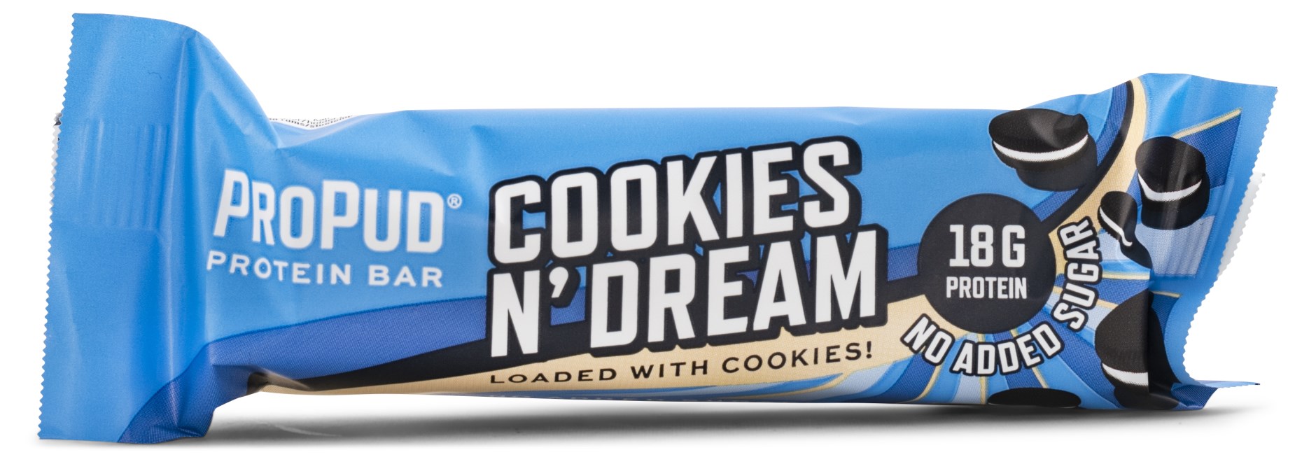 Propud Protein Bar är en utsökt proteinbar i flera otroligt goda smaker, ett måste för gourmeten som ständigt är på jakt efter protein. Propud Protein Bar är en proteinberikad bar på 55 gram, varav cirka 16-19 gram protein, och innehåller omkring 200 kalorier (beroende på smak). Lätt att ha med sig i väskan och smakar gott som ett proteinrikt mellanmål eller som återhämtning efter träning. ProPud Protein Bar innehåller mjölkprotein som huvudsaklig proteinkälla, och är fri från tillsatt socker. Välj mellan flera goda smaker, inspirerade av klassiska bakverk och desserter.