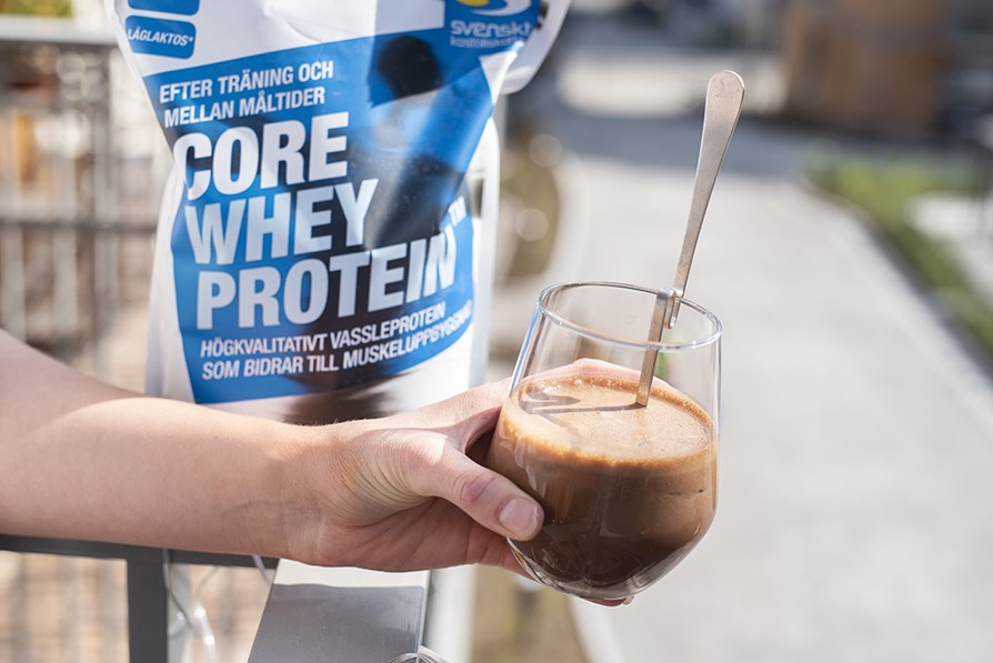 • 1 skopa Core Whey Choklad Milkshake eller Kaffe Latte