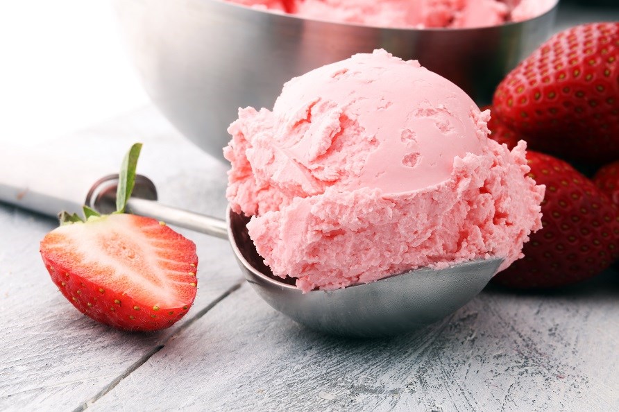 Söt och svalkande proteinglass med smak av jordgubb och banan.