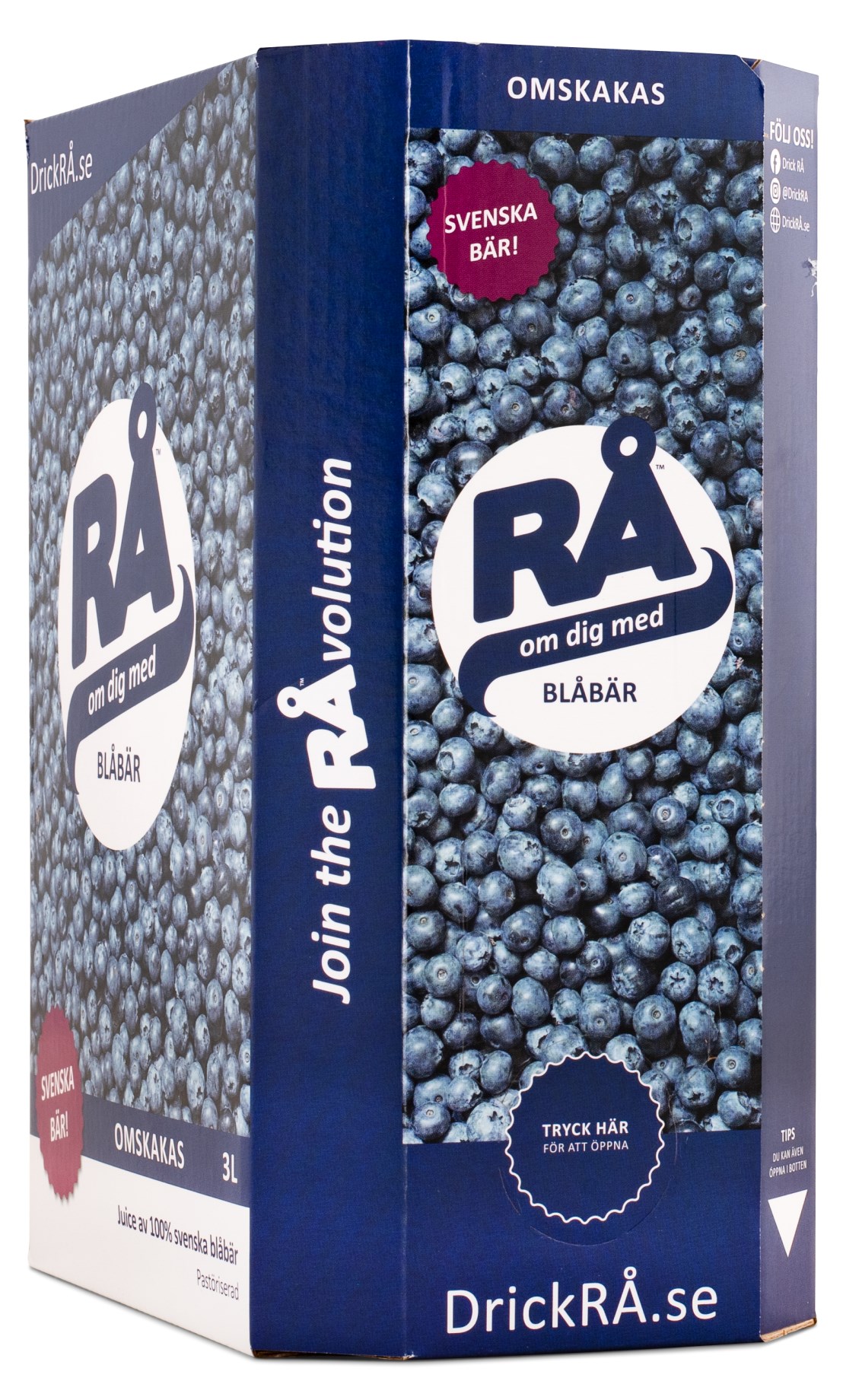 RÅ Blåbär är en riktig superdryck med vitaminrika blåbär från svenska skogar! Bären har hanterats varsamt för att bibehålla sina nyttiga egenskaper och slutprodukten är helt fri från tillsatt socker och andra tillsatser. Tack vare sin tätslutande förpackning har denna bag-in-box dessutom en hållbarhet på minst en månad efter öppning.