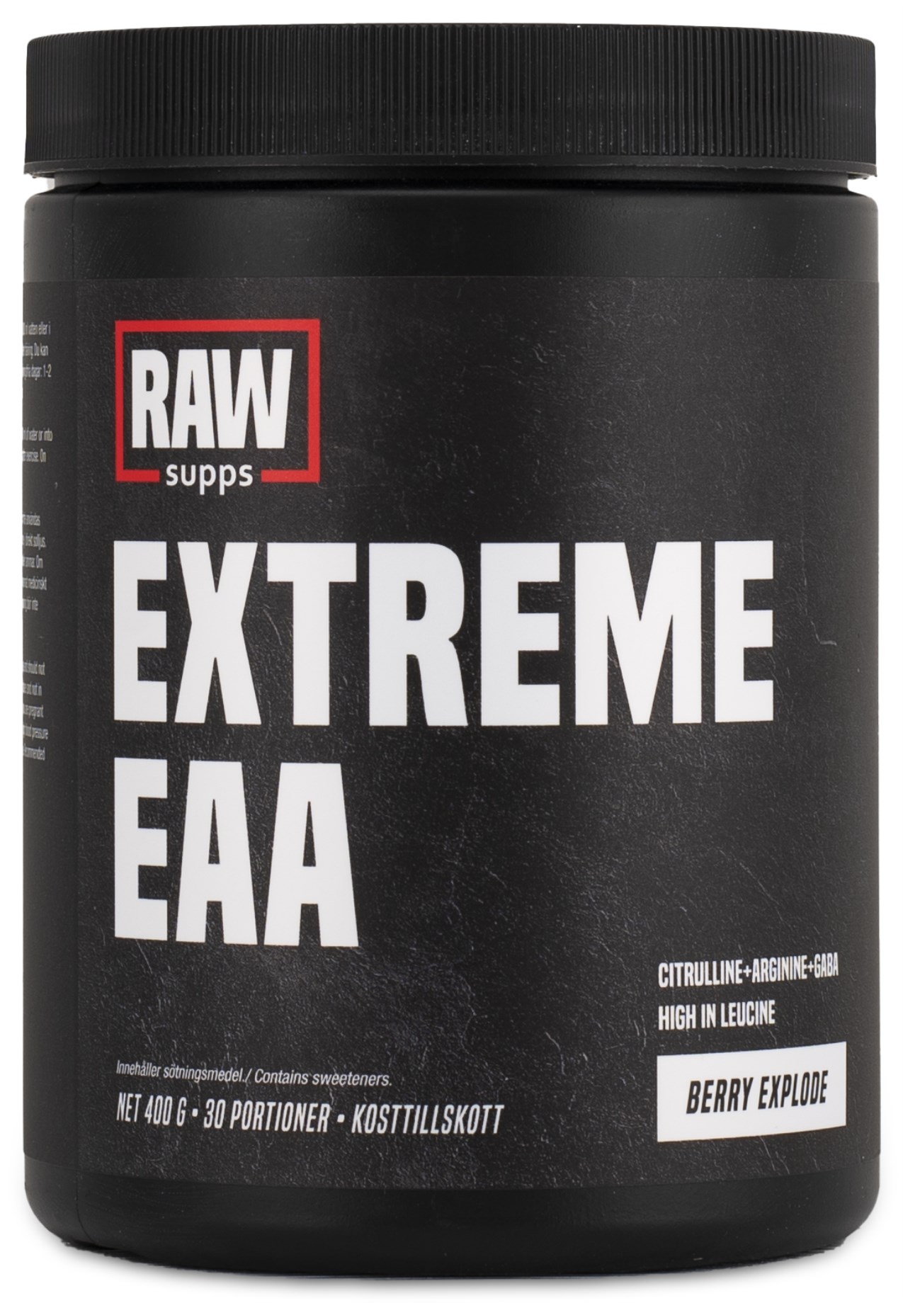 RAW Extreme EAA är ett aminosyratillskott med ett exploderande innehåll av essentiella aminosyror i en väl tilltagen mängd. Dessutom tungt armerad med ytterligare aminosyror som stödjer flera av kroppens processer för optimal styrka, återhämtning och uthållighet. Finns i flera goda smaker!
