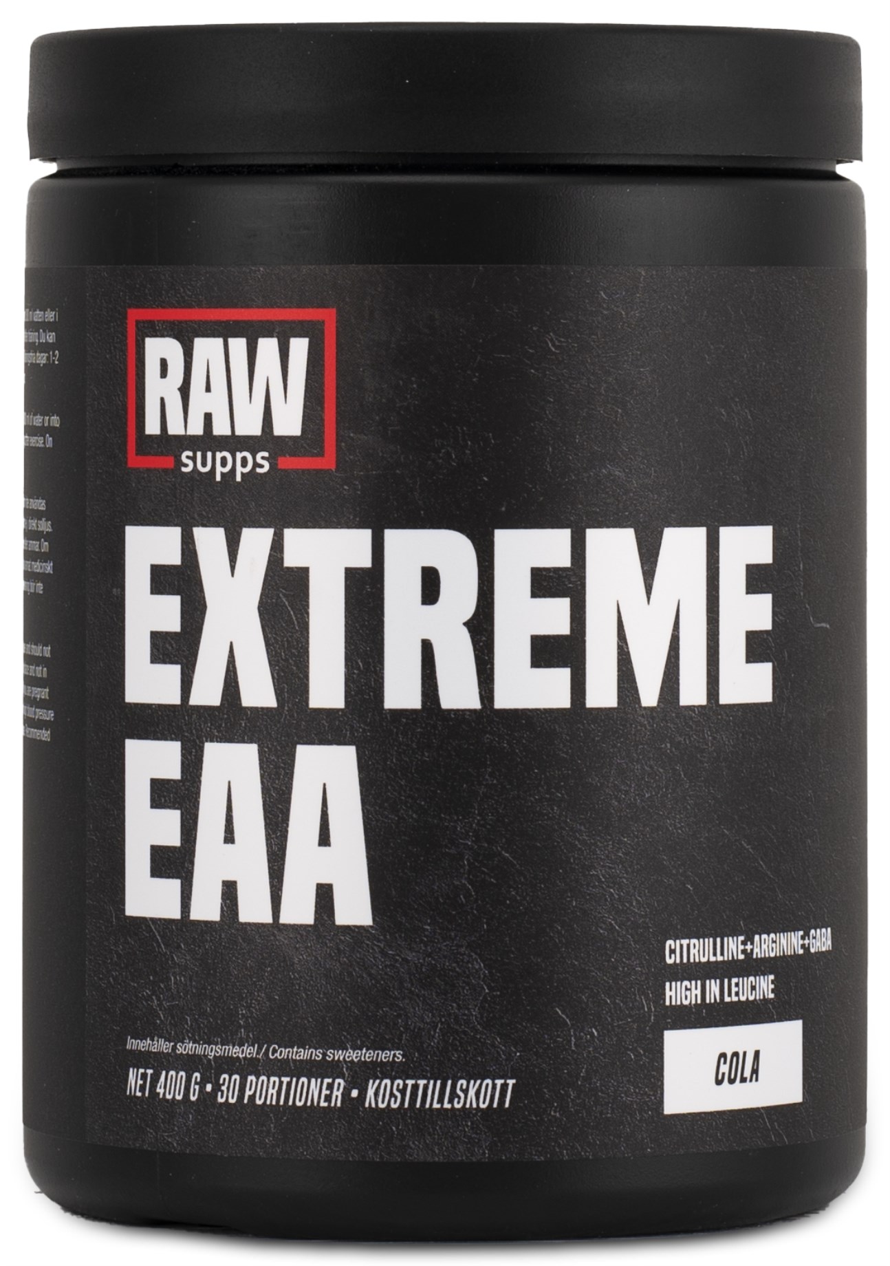 RAW Extreme EAA är ett aminosyratillskott med ett exploderande innehåll av essentiella aminosyror i en väl tilltagen mängd. Dessutom tungt armerad med ytterligare aminosyror som stödjer flera av kroppens processer för optimal styrka, återhämtning och uthållighet. Finns i flera goda smaker!