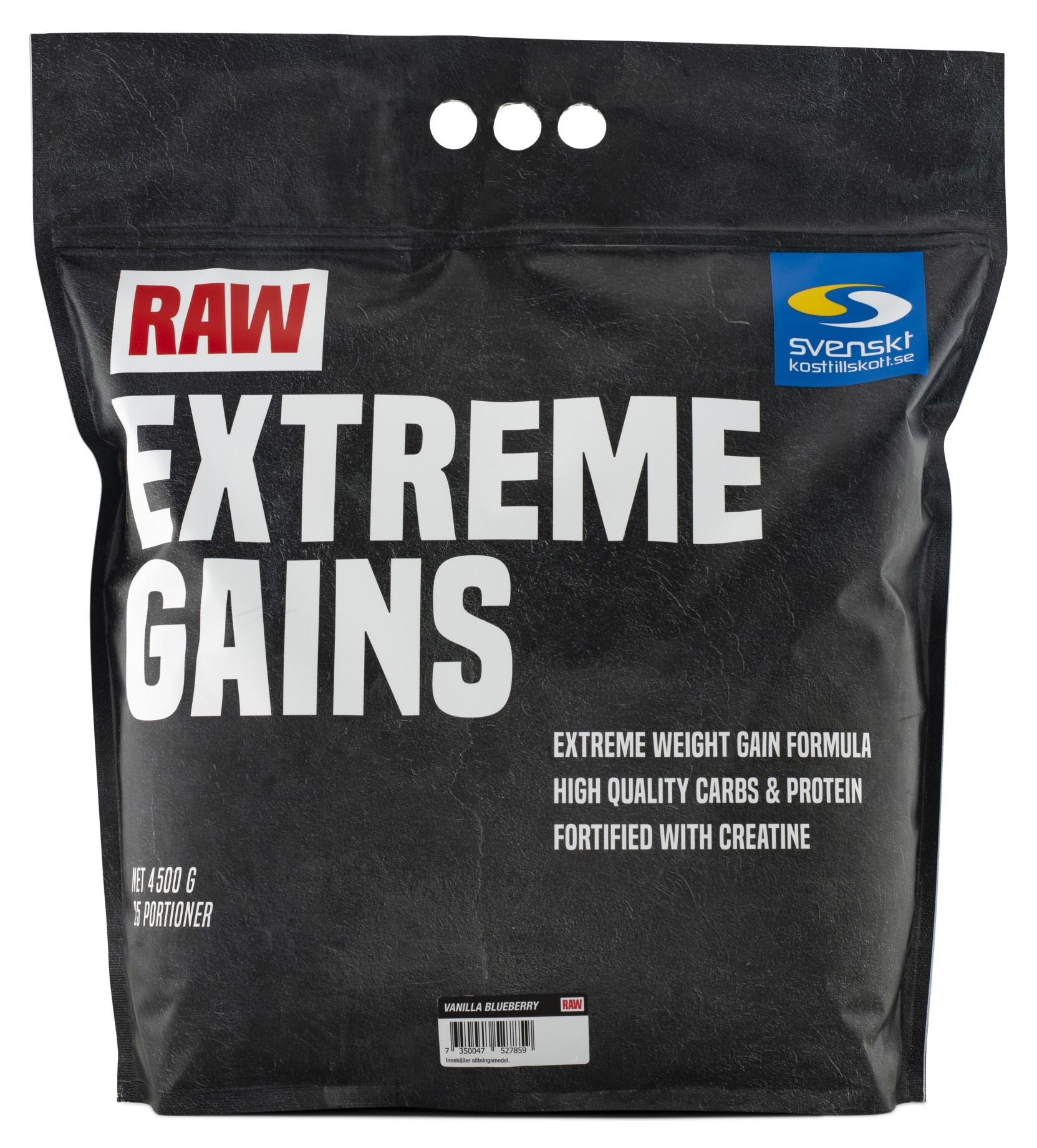 RAW Extreme Gains är nästa generations massiva gainerformula. Förutom dess täta kaloriinnehåll utmärker sig produkten genom att ge en balans av både snabba och långsamma kolhydrater från havre. Så att du får en jämn tillförsel av kolhydrater och inte blodsockerfall.