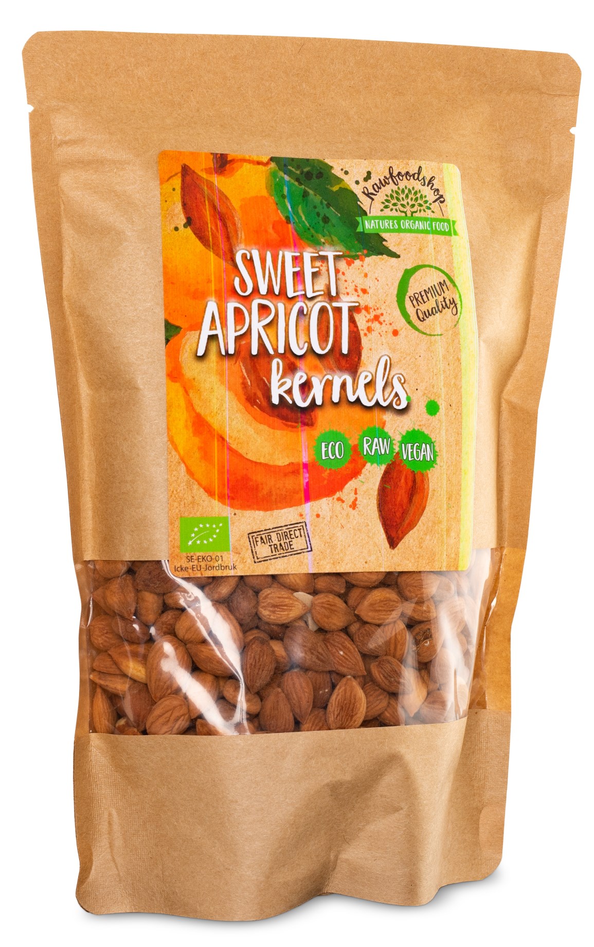 Från Pakistan kommer dessa frön med söt smak. De känns även igen under namnet aprikosmandlar. Raw Food Shops mandlar kommer från ett aprikosträd som får söta aprikoskärnor där kärnan liknar mandeln men smakar som söt aprikos. I orienten föredrar man dessa frön framför mandeln.