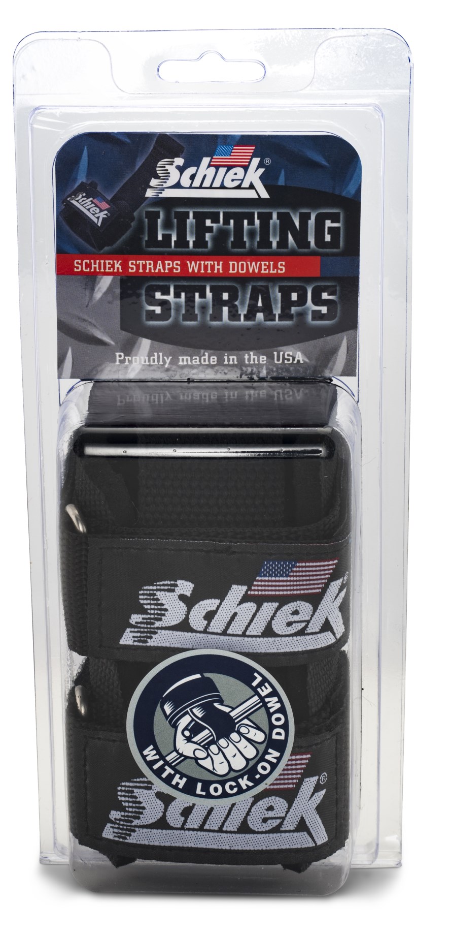 Schiek Power Lifting Straps + Dowel är den perfekta dragremmen om du vill ha en kortare tyngdlyftningsrem då denna är 15 cm lång. I änden av remmen finns en flik som fungerar som en kil mellan hand och stång för att säkra greppet. Remmarna har en bekväm handledssupport som är 0,6 cm tjockt och 6 cm brett, gjort av neoprene. Låt inte greppet hindra dig att lyfta så tungt du kan. Använd remmen när du ska greppa skivstång, hantlar eller vid olika dragövningar.