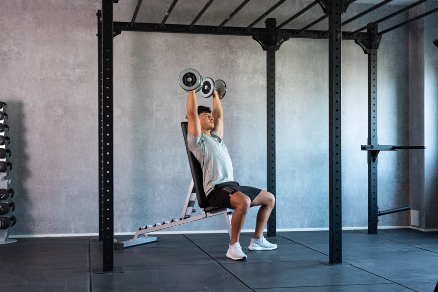 • Tänk på att pressa ner axlarna samtidigt som du trycker upp hantlarna.