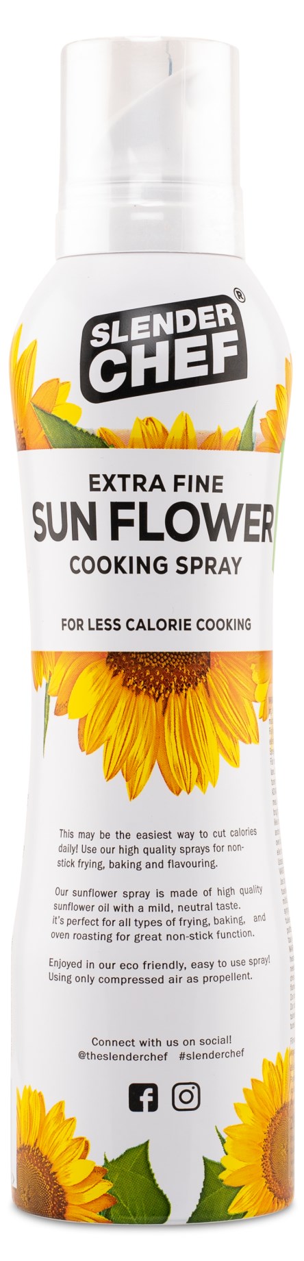 Slender Chef Cooking Spray Sunflower Oil är baserad på solrosolja.