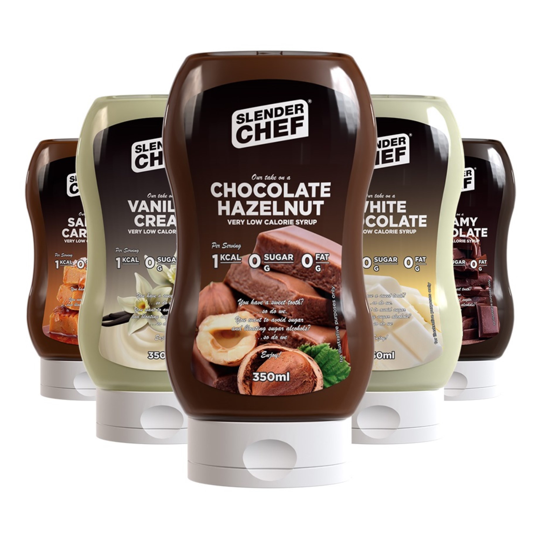Dessa magiskt goda såser från Slender Chef är ett nyttigare alternativ till traditionella toppings för dig som vill hålla koll på sockerintaget. Slender Chef Syrup kommer i flera olika varianter som passar till allt från gröt, glass och pannkakor till bakverk och desserter. Såserna är fria från både fett och socker och innehåller så lite som 1 kcal per portion - du kan med andra ord äta Slender Chef Syrup även om du går på lågkaloridiet. Och det bästa av allt är att Slender Chef verkligen inte gjort avkall på den goda smaken; du kommer garanterat att vilja prova dem alla för en lyxigare vardag!