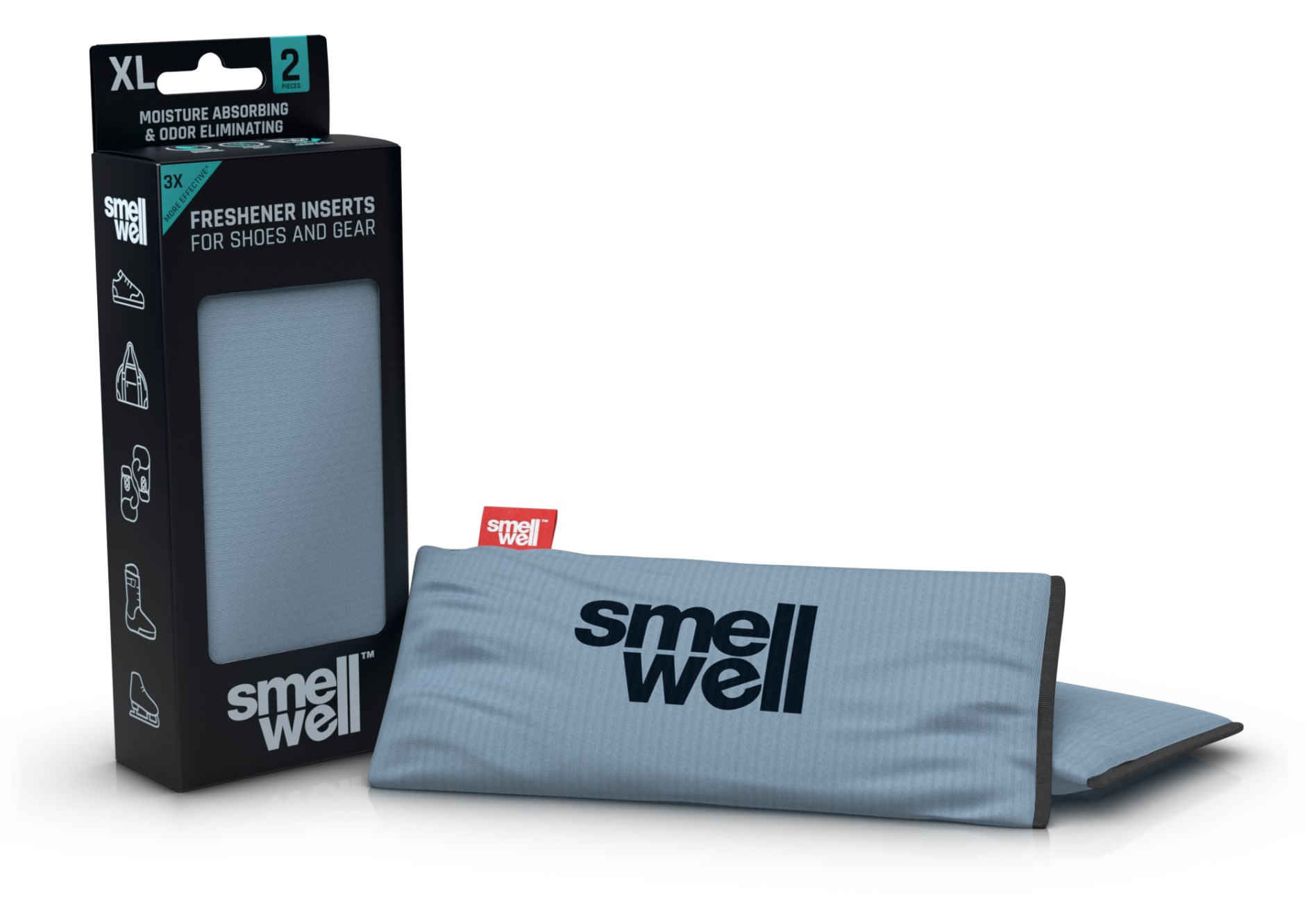 SmellWell Active XL är doftpåsar som håller dina skor, kläder, väskor och idrottsutrustning fräscha längre. Doftpåsarna är snäppet vassare och en vidareutveckling av SmellWell Active. Dessa doftpåsar absorberar fukt och dålig lukt väldigt effektivt och har en hållbarhet på upp till 6 månader vid daglig användning. Lägg gärna SmellWell i dina skor under natten för att kunna kliva i ett par fräscha skor på morgonen. Påsarna passar också lika bra att lägga ned i träningsväskan som i boxningshandskar eller pjäxor. De är testade för miljö- och konsumentsäkerhet och innehåller inga bakteriedödande ämnen. Alla påsarna har samma härliga doft men finns i olika designer.