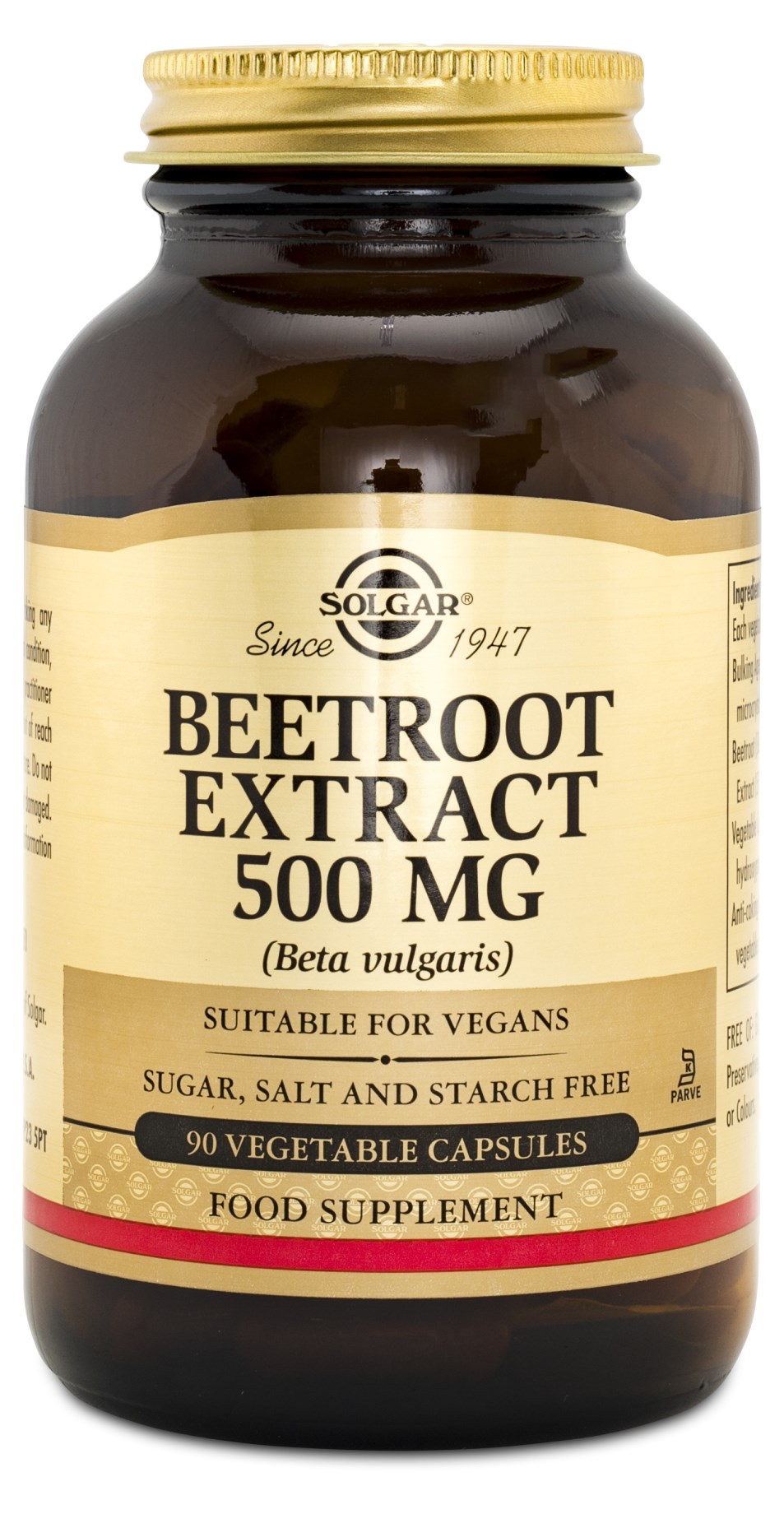 Solgar® Beetroot Extract 500 mg är ett dagligt tillskott av pulver från rödbeta. Dessa kapslar innehåller 500 mg rödbetsextrakt per portion samtidigt som de är fria från salt, socker och stärkelse. Rödbetan är naturligt rik på nitrater, vilket är extra intressant för dig som tränar någon typ av uthållighetsträning. Nitrat fungerar nämligen som en föregångare till kväveoxid, som i lagom dos bidrar till att blodkärlen vidgas. Detta upplever många som en fördel vid konditionsträning som löpning, cykling och simning. Nitrat finns även naturligt i dricksvatten och i vissa andra grönsaker som spenat och ruccola. Solgar® Beetroot Extract 500 mg är vegansk och kan intas både på träningsdagar och vilodagar.