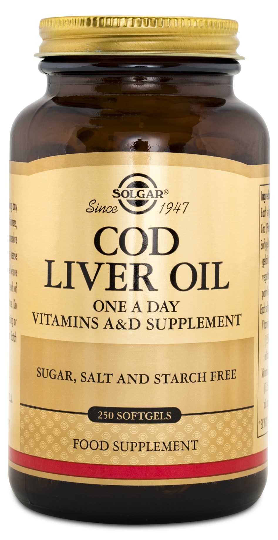 Solgar Cod Liver Oil innehåller 462 mg torskleverolja per kapsel och tillför flera viktiga fettsyror till kroppen. Solgar Cod Liver Oil framställs från fisk som lever i djupa, kalla hav vilket anses höja kvaliteten på fiskoljan. Fiskleverolja är typiskt rik på bland annat omega-3-fetter, men innehåller också vitamin A och D. Omega-3 bidrar till en normal hjärt- och kärlhälsa och till normal cellbildning, medan vitamin A bidrar till normal syn och normala slemhinnor. Vitamin D bidrar bland annat till ett normalt fungerande immunsystem. Både vitamin A och vitamin D är fettlösliga vitaminer vilket gör att de gynnas av att intas i samband med en liten mängd fett från en måltid.