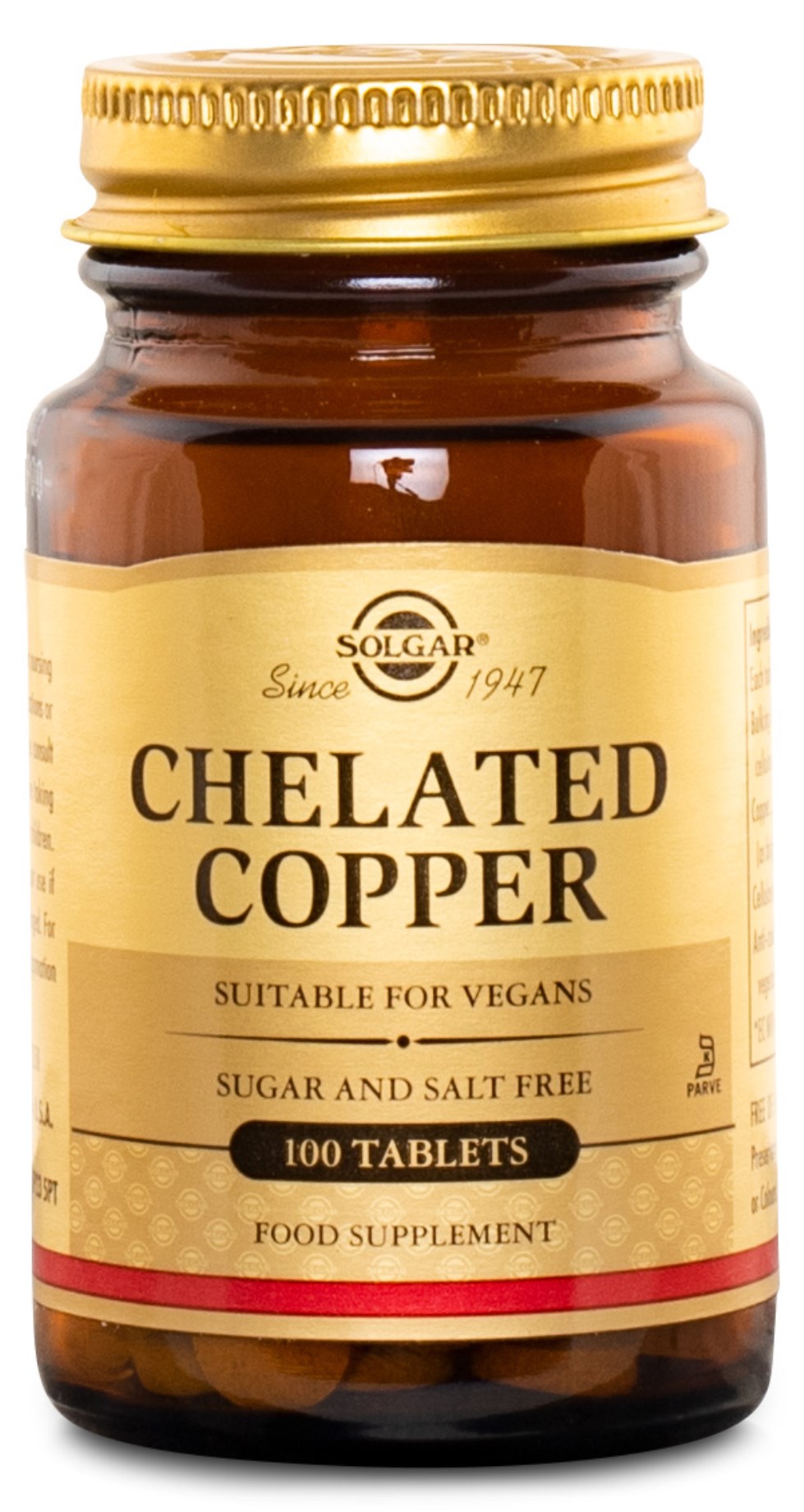 Mineralet koppar behövs i mycket små mängder och är essentiell, vilket innebär att vi måste få i oss det via kosten. Koppar bidrar till transporten av järn i kroppen och bidrar även till en normal nervfunktion, samt till kollagenets funktion. Dessutom bidrar koppar till hårets normala pigmentering. Solgars koppartillskott innehåller kelaterad koppar, vilket innebär att mineralet är bundet till en aminosyra för att bättre kunna tas upp i kroppen. Denna kelatering är producerad genom en patenterad tillverkningsprocess.