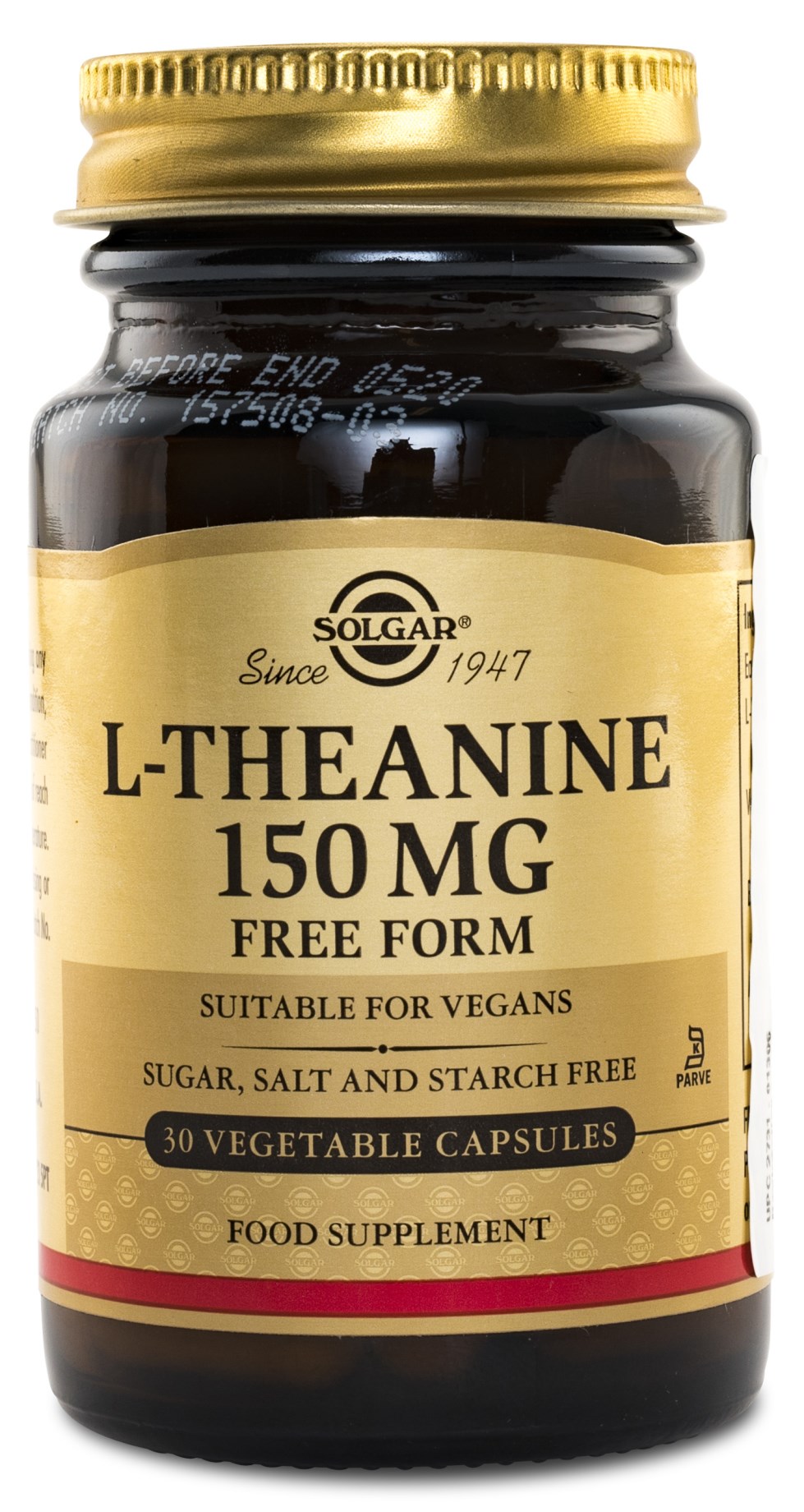 Solgar L-theanine innehåller aminosyran teanin i fri och lättupptagbar form, Suntheanine®. Solgar L-theanine är anpassad för perioder av hög belastning och stressnivå. L-teanin hjälper till att reglera nivåerna av GABA i kroppen, ett ämne som spelar en roll för nervsystemet. Solgar L-theanine är vegetabiliska kapslar med 150 milligram teanin per dos. Teanin finns naturligt i grönt te och det är en av anledningarna till att en kopp grönt te passar bra till kvällen.