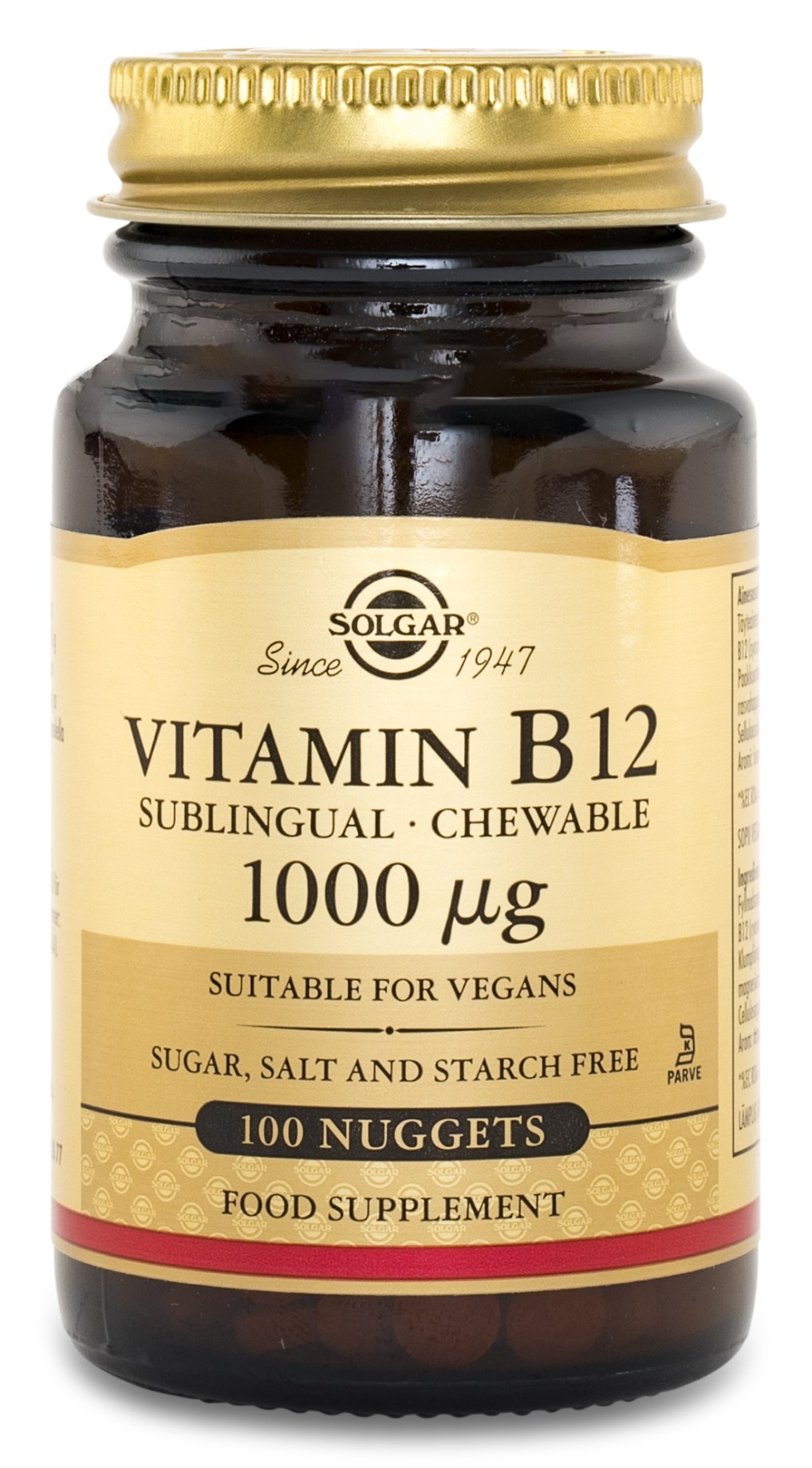 Vitamin B12 (kobalamin) bidrar till normal bildning av röda blodkroppar och till nervsystemets normala funktion. Det bidrar i sin tur till en minskad trötthet och utmattning. Vitamin B12 förekommer nästan enbart i animaliska livsmedel, så att personer med strikt vegetarisk kost kan har svårt att få i sig en tillräcklig mängd. Detta tillskott innehåller en hög dos B12 i vegetabiliska sugtabletter.