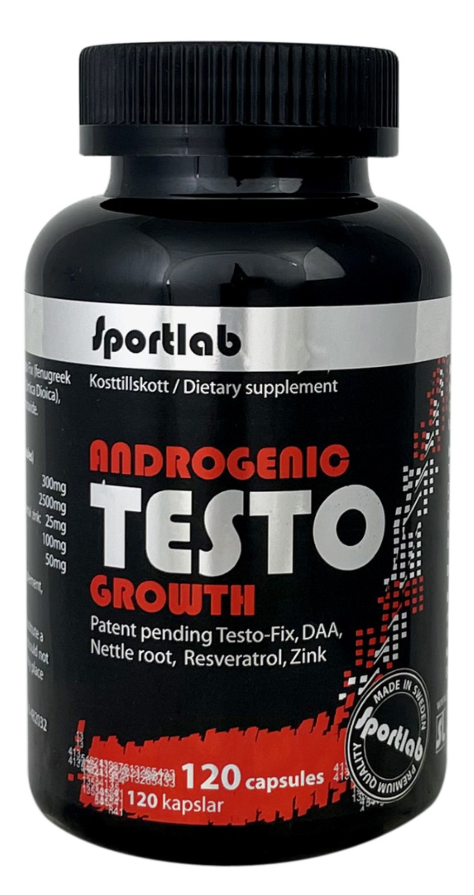 Sportlab Testogrowth är ett tillskott för män. Kapslarna innehåller 5 aktiva ingredienser i en unik kombination: zink som bidrar till normala testosteronnivåer i blodet, samt fenugreek, DAA, brännässla och resveratrol. Normala testosteronnivåer är en viktig faktor för muskeltillväxt och återhämtning.