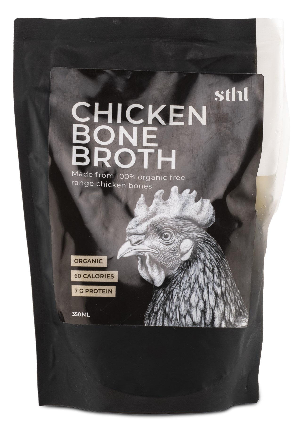 STHL kycklingbenbuljong kommer från frigående höns som hålls enligt ekologiska standarder inom EU. Höns som får röra sig fritt och äter ekologiskt foder ger en mer näringsrik buljong än kycklingar som föds upp konventionellt, eftersom deras kost är mer naturlig. Ekologiskt jordbruk har också strikta krav på djurens välbefinnande. Detta resulterar i en smakrik benbuljong som är rik på protein och kollagen, samt har låg fetthalt.