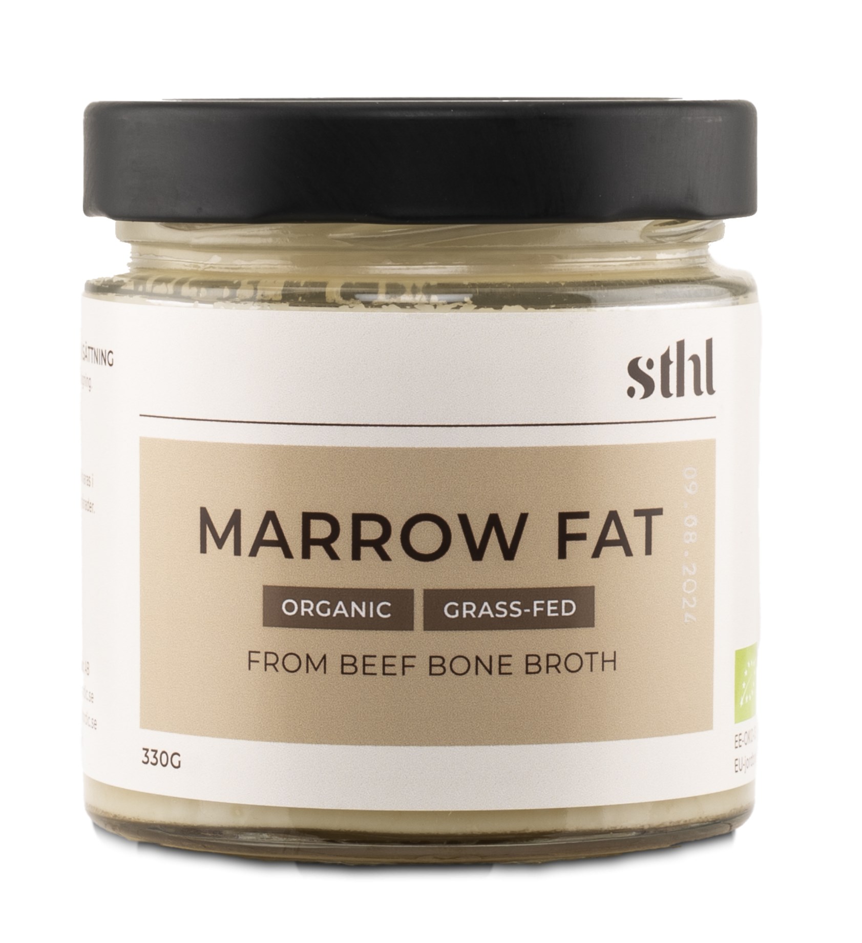 STHL Marrow Fat är ett ekologiskt märgfett som framställs genom kokning av benbuljong från gräsbetande kor. Det här fettet är särskilt väl lämpat för matlagning vid höga temperaturer och utgör ett utmärkt och naturligt alternativ till de industriella fröoljor som används vid stekning. Nötmärgen har en rik och intensiv smak som ger extra djup åt dina rätter.