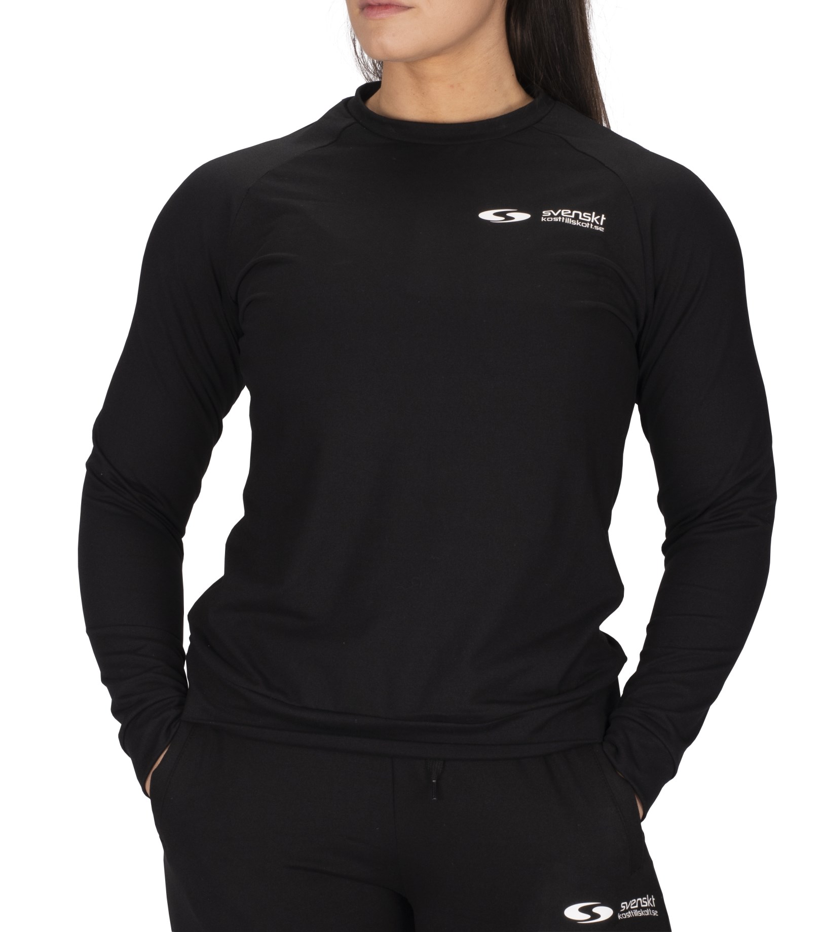 En klassisk sweatshirt blir aldrig fel! Sweatshirt Dam 2.0 är en mjuk och tunnare tröja tillverkad i funktionsmaterial med hög stretch vilket ger dig full rörelsefrihet. Med en följsam och atletisk passform som framhäver dina bästa sidor. Raglanärm för en sportigare känsla. Perfekt på gymmet, för en sportigare look i vardagen eller att bara mysa i hemma! Svenskt Kosttillskotts logga fram och bak.