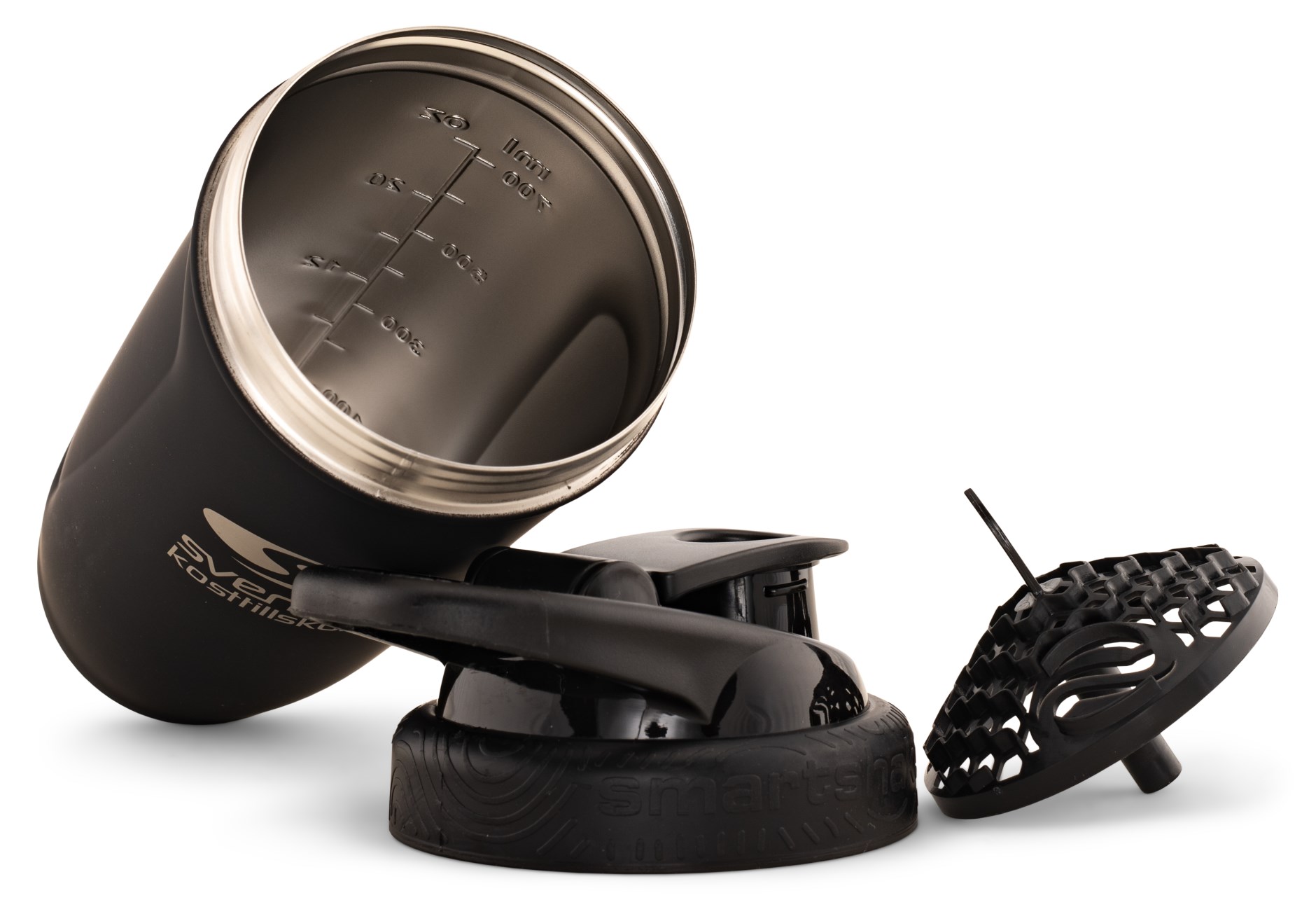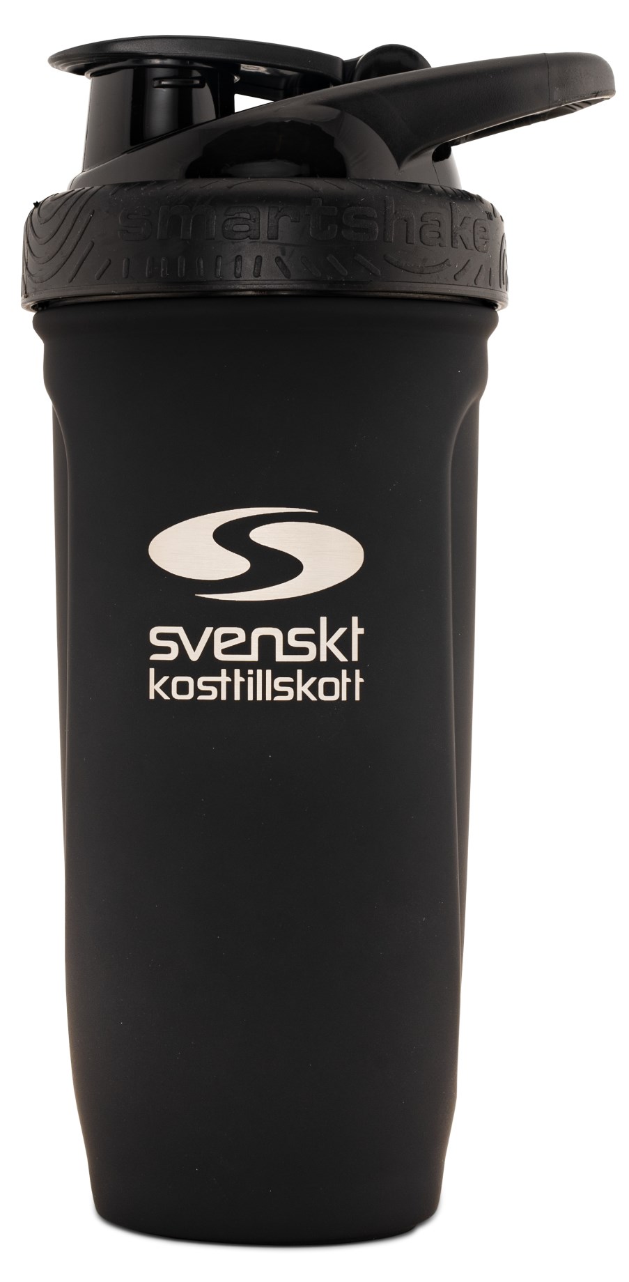 SVK Metal Shaker är en smidig och lätt shaker tillverkad av Smartshake i hållbart och hygieniskt rostfritt stål. Perfekt för att blanda din proteinshake, aminosyror eller för att skaka ihop din pannkaksmix. Shakerns utsida är silikonklädd vilket ger den ett bra grepp. Med ett handtag på ovansidan som gör att du enkelt kan bära med dig den. Locket är läckagesäkert och du behöver inte oroa dig för att den ska läcka. Flaskan har en bred öppning med mjuka hörn som gör den enkel att rengöra. Fri från BPA och DEHP.
