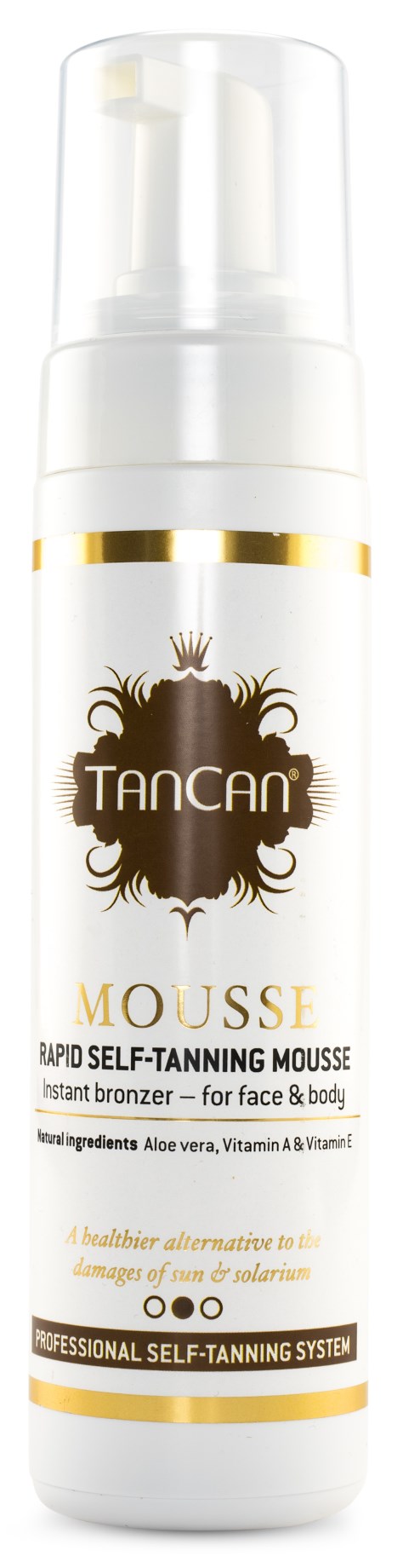 Få en snabb och vacker lyster till hyn enkelt med den nya self-tanning moussen från TanCan. TanCan self-tanning mousse är en snabbverkande brun utan sol mousse som du applicerar på rengjord, skrubbad och torkad hud. Få en djup, jämn och naturtrogen solkysst hud som håller i cirka en vecka med brun utan sol mousse från TanCan. För lättare applicering använd TanCan Mitt, handske speciellt framtaget för att applicera brun utan sol smidigt.