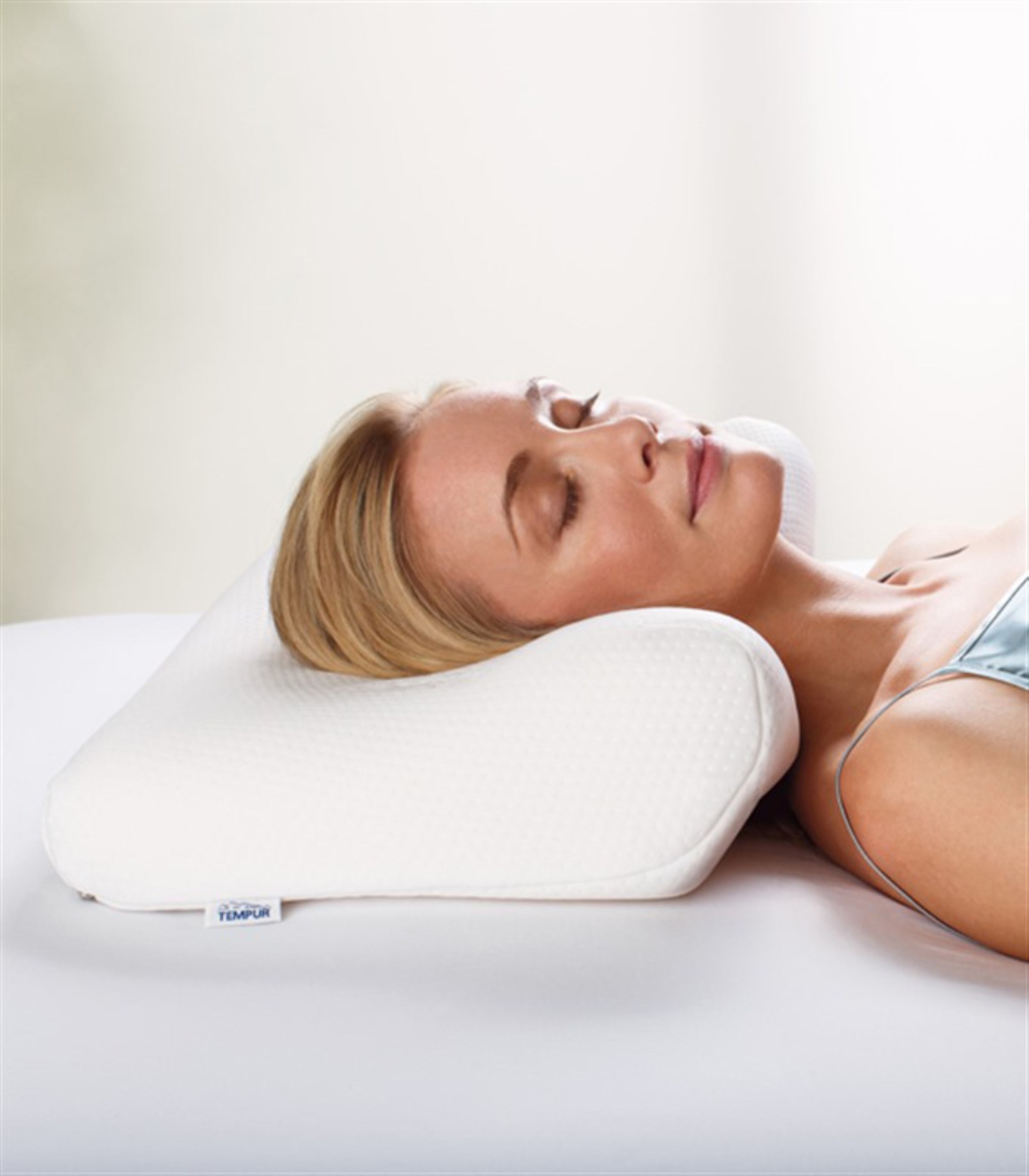 Tempur Millennium Kudde har en rundad kant som är lägre i mitten och högre på sidorna för att ge nacken rätt ställning oavsett om du sover på rygg eller på sidan. Den framåtlutande designen ger utmärkt stöd till de övre ryggkotorna även om du byter sovställning under natten. Även framkanten är framåtlutad så att den omsluter de övre kotorna och ger överlägsen komfort och terapeutiskt stöd.