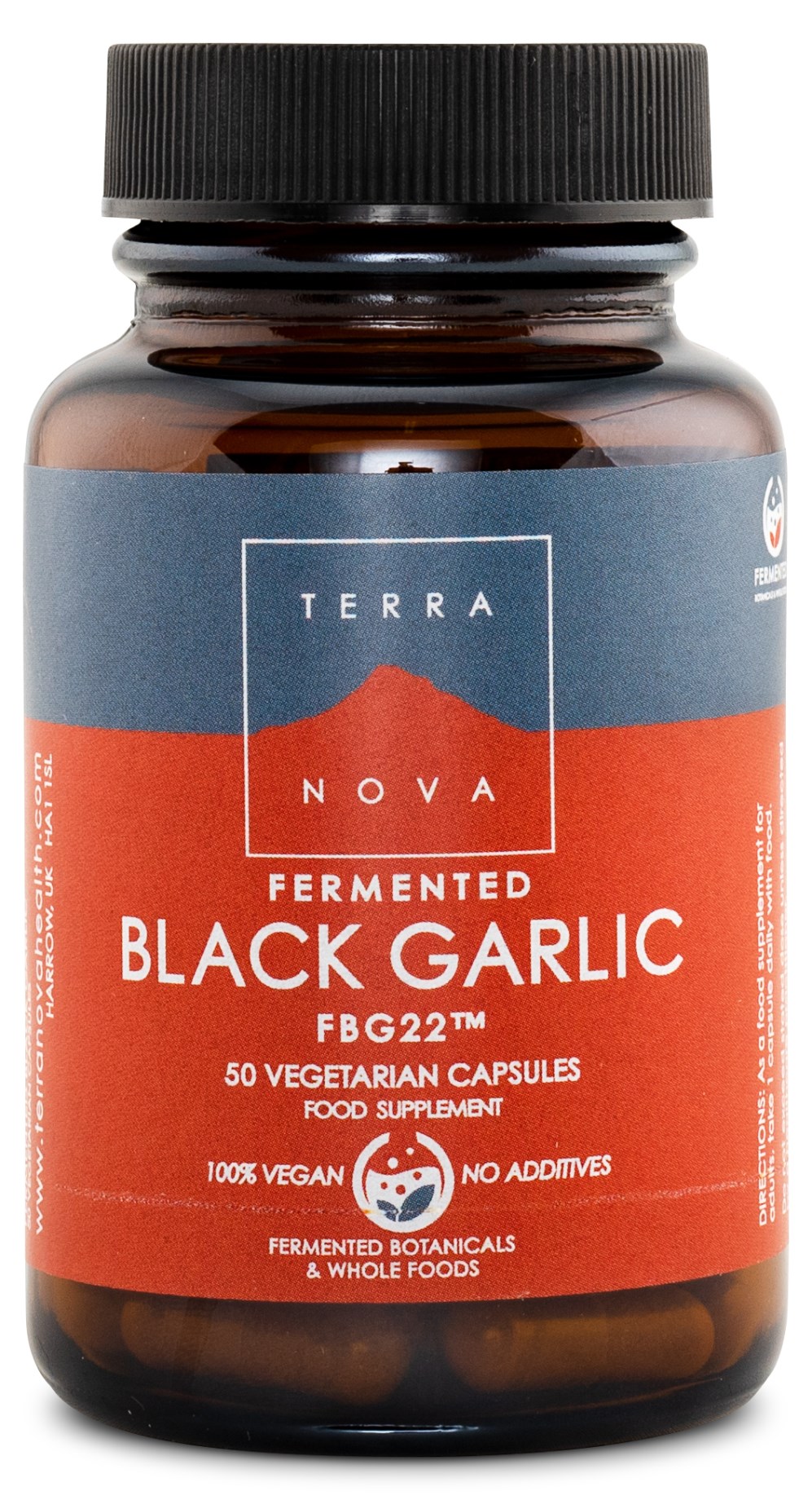 Terranova Fermented Black Garlic FBG-22 är ett patenterat extrakt av fermenterad vitlök. Extraktet är tillverkat av färsk vitlök (Allium sativum L.) som fermenterats hela tre gånger i olika intervaller och temperaturer, vilket ger vitlöken en mörkbrun till svart färg. Genom att fermentera vitlöken höjs biotillgängligheten av näringsämnena samtidigt som lukt och smak blir mildare. Fermenterad vitlök är bland annat rikt på S-allyl-cystein (SAC), en vattenlöslig svavelförening som anses vara mer stabil och lättupptaglig än allicin som finns i färsk vitlök. Terranova Black Garlic innehåller hela 10 mg SAC per gram.