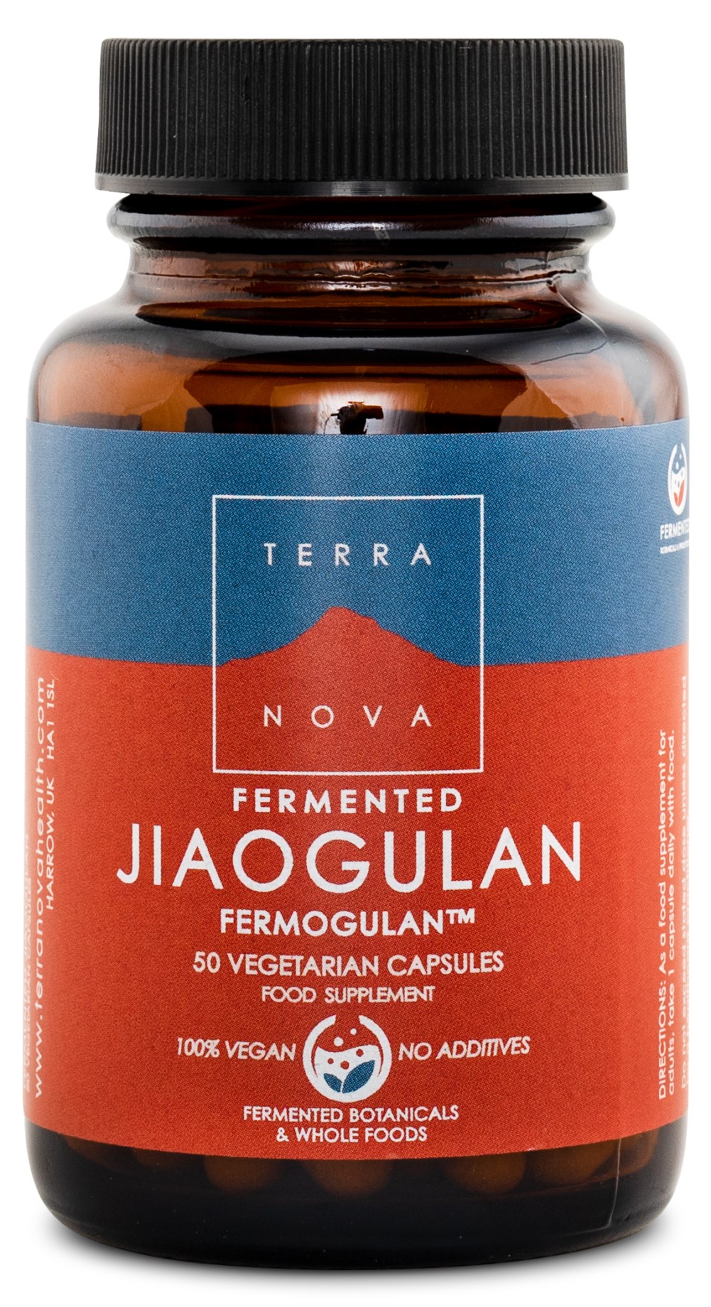 Terranova Fermented Jiaogulan Fermogulan är ett kosttillskott med fermenterad jiaogulan (Gynostemma pentaphyllum), en flerårig vinstock som växer i Syd- och Sydostasien. Det är en adaptogen ört som är nära besläktad med ginseng. Den har länge använts i Kina där den kallas “evighetens ört” eller “odödlighetens ört”. Jiaogulan är nämligen rik på bland annat polysackarider, vitaminer, aminosyror, flavonoider och saponiner. Genom att fermentera örten höjs mängden aktiva ämnen och det blir även lättare för kroppen att tillgodogöra sig dessa. Terranova Fermented Jiaogulan Fermogulan kan med fördel användas i perioder då du behöver energi och skärpa. Tillskottet är 100 % naturligt och innehåller inga rester av bekämpningsmedel, konserveringsmedel eller tungmetaller.