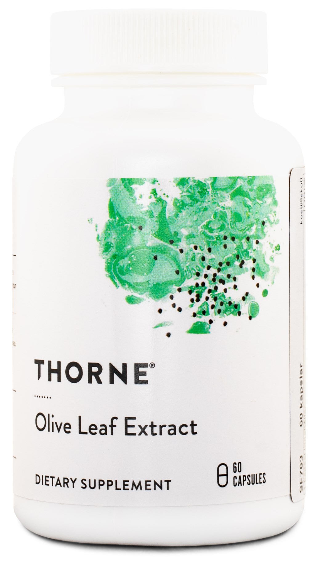 Thorne Olive Leaf Extract är ett tillskott med extrakt av olivblad samt L-leucin. Olivblad innehåller oleuropein, ett ämne som tillskrivs flera olika egenskaper. Det fungerar bland annat som en antioxidant i olivbladen och skyddar dem mot parasiter, virus och bakterier. Thorne Olive Leaf Extract innehåller 500 mg olivbladsextrakt per dos.