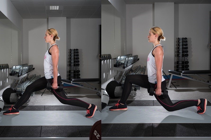 Utförande: Lägg upp skivstången på ryggen med passande vikt, och ta sedan ett relativt stort kliv framåt. Placera sedan fötterna höftbrett isär för att få stabilitet samt en mer skonsam rörelse. Gå ner mot marken genom att böja ner det bakre benet, och tryck dig sedan uppåt igen. När du är i bottenläget ska det främre benet ha en vinkel på ca 90 grader.