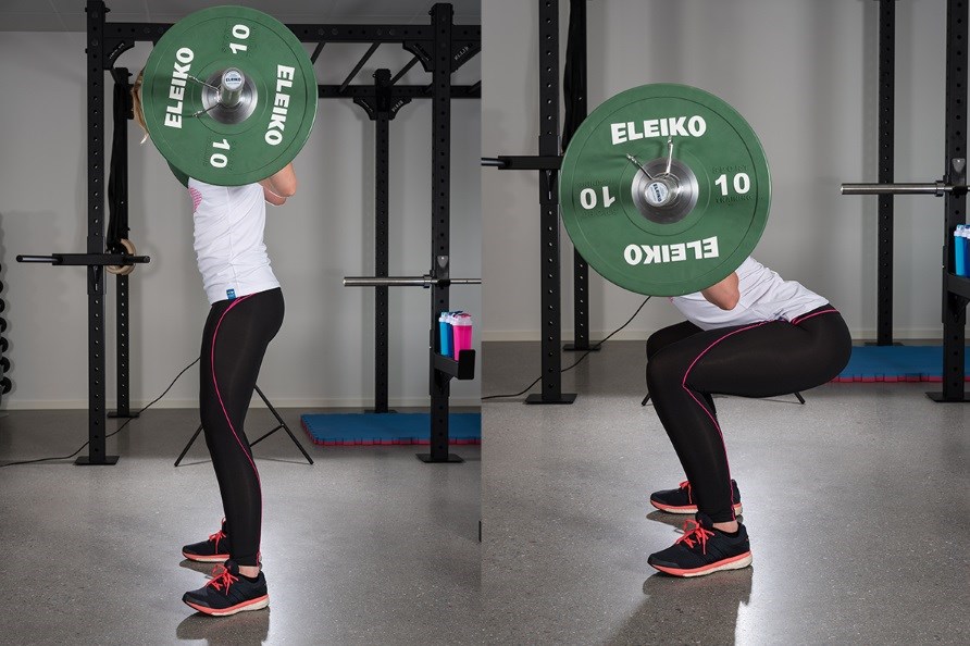 Att tänka på: Här är det viktigt att knäna går ut i samma riktning som fötterna för att undvika knäskador. Tänk även på att inte luta dig för mycket framåt, utan låt tårna vara din gräns för hur långt fram dina knän kan gå. Utöver detta är det a och o att hålla ryggen i en bra lätt svankande position under hela rörelsen. Avlasta ryggen med hjälp av magmuskulaturen.