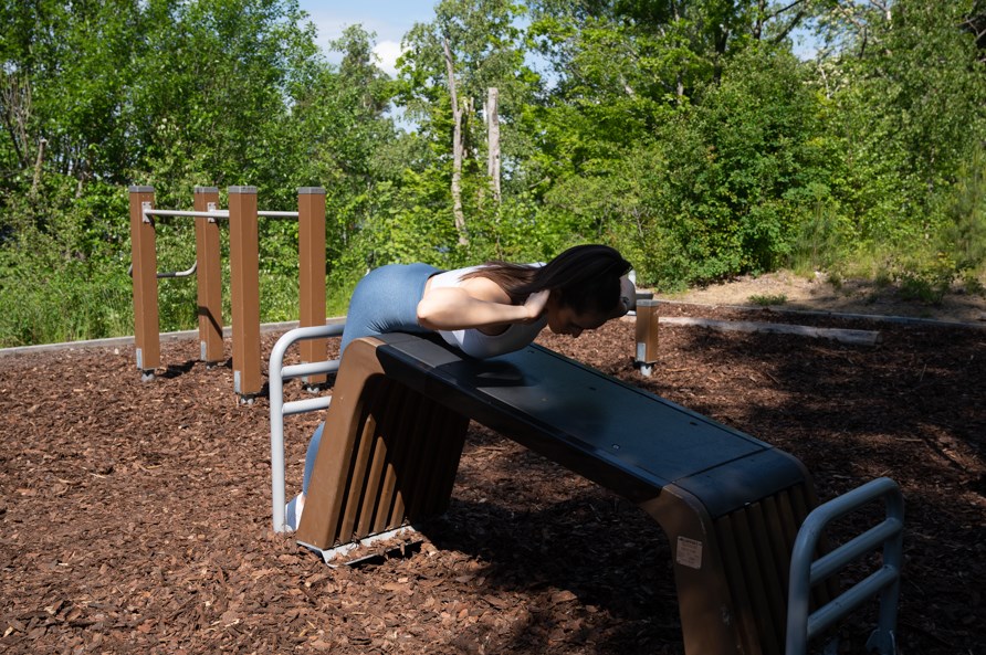 Innan du kör igång kan du värma upp genom olika rörlighetsövningar, ta en promenad till utegymmet eller springa en kortare löprunda på 10 minuter. Normalt när det gäller styrketräning brukar man prata om sets för antalet omgångar och reps för antalet repetitioner, men på utegym kan man få tänka annorlunda då det inte går att justera vikten på samma sätt. Här justerar du själv med kroppen eller med hjälp av en träningskompis. Det viktiga är att kunna utföra övningen tills du inte klarar av att göra fler reps. Försök att utmana dig själv!