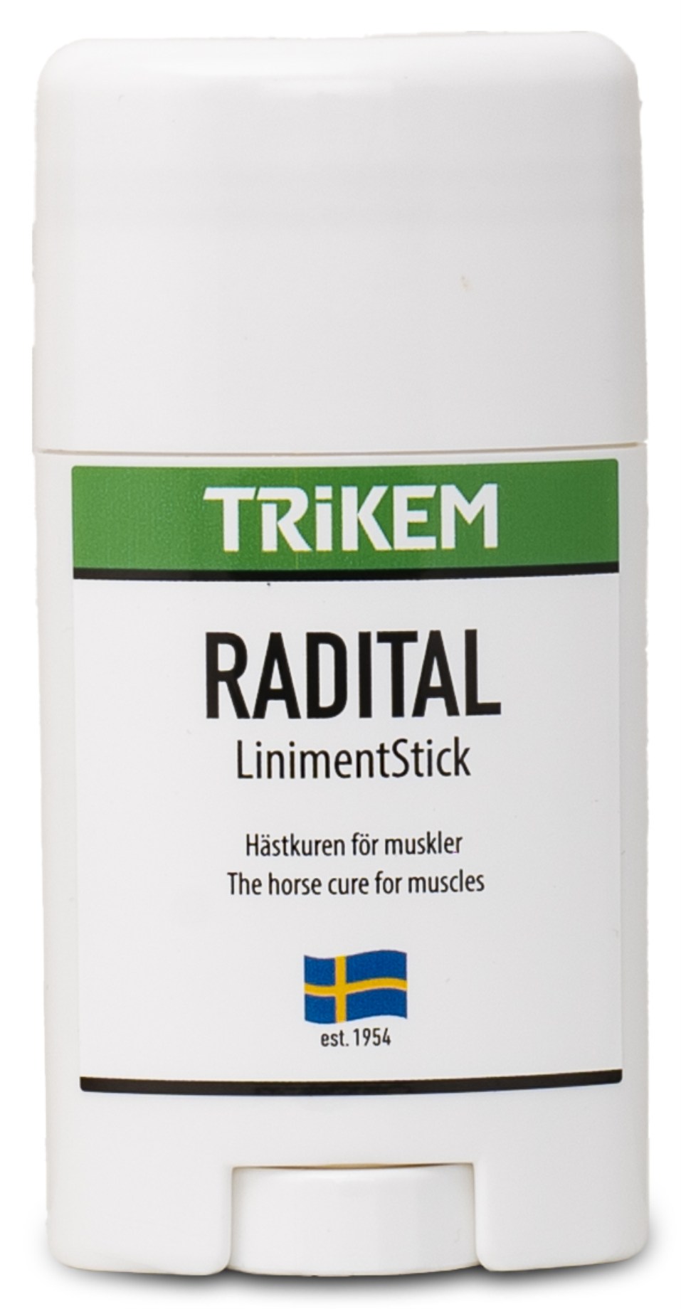Trikem Radital Liniment Stick är ett effektivt och smidigt liniment i stickformat. Ökar blodflödet, kan förkorta återhämtningstiden och ger tillfällig smärtlindring. Linimentet ger vid applicering en kylande känsla och övergår sedan till långvarig värme. Perfekt för ömma muskler, senor och leder.